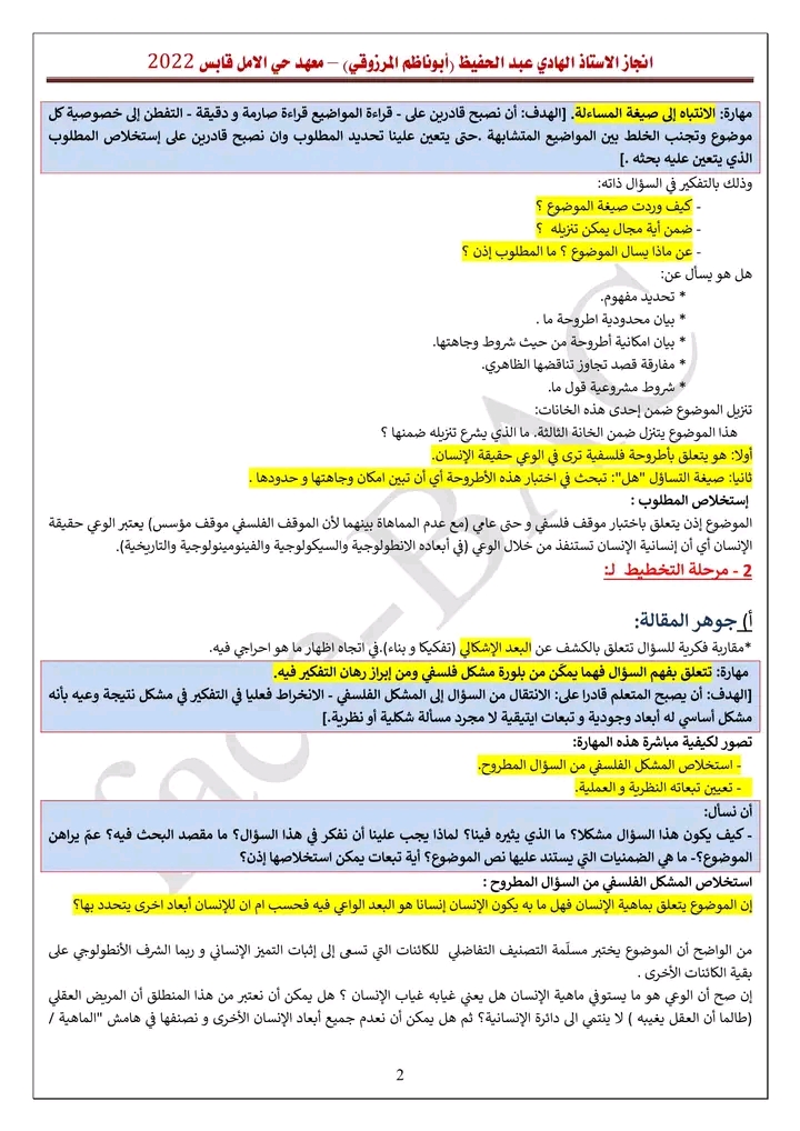 # **عناصر التميز في المقال الفلسفي (نص/موضوع)**