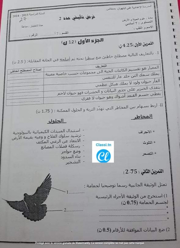 فرض تأليفي عدد 2 علوم الأرض والحياة بالاصلاح