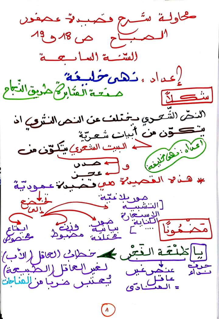 فرض تأليفي / جامع عدد 1 في مادة العربية (7 أساسيا)