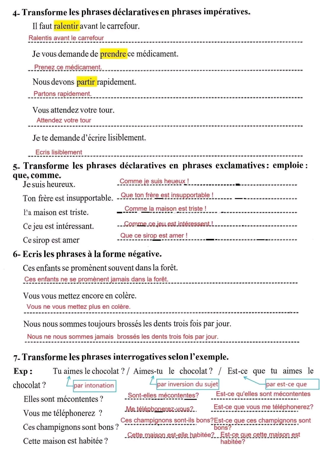 7éme année les types et les formes de phrases