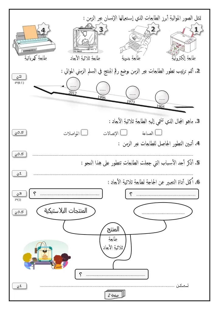 " إختبار كتابي عدد 2 في مادة التكنولوجيا "