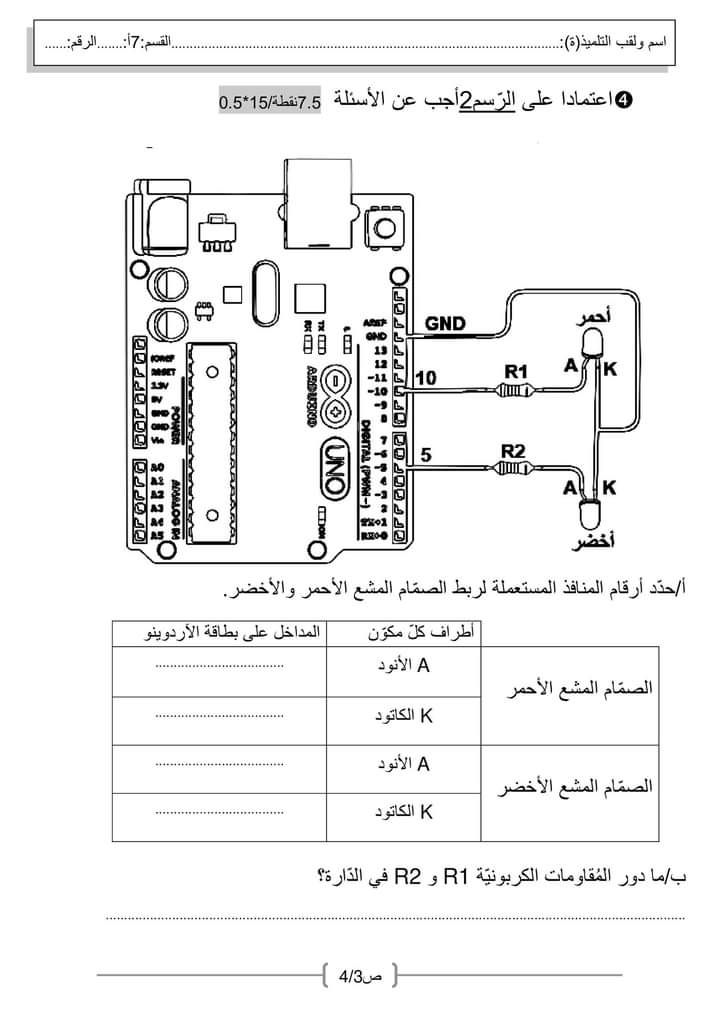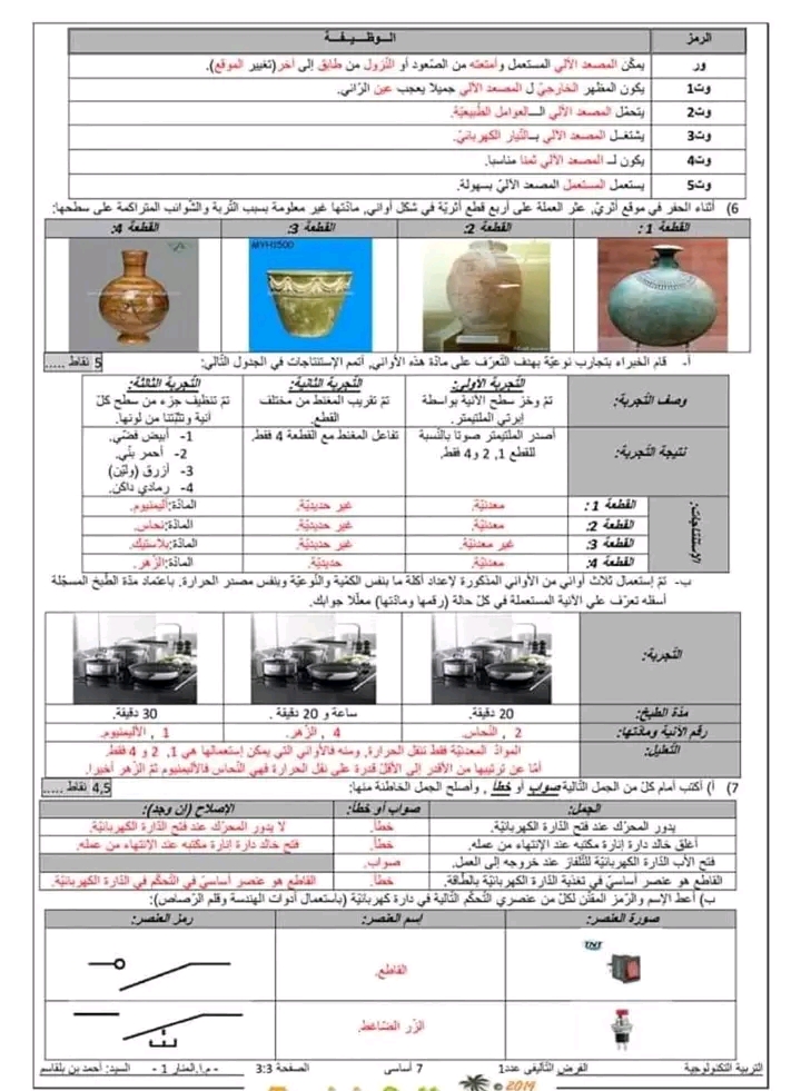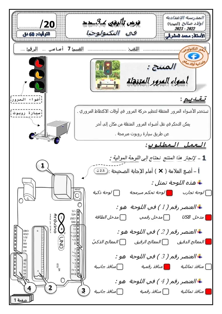 فرض مراقبة عدد 2 في مادة التربية التكنولوجية بالاصلاح