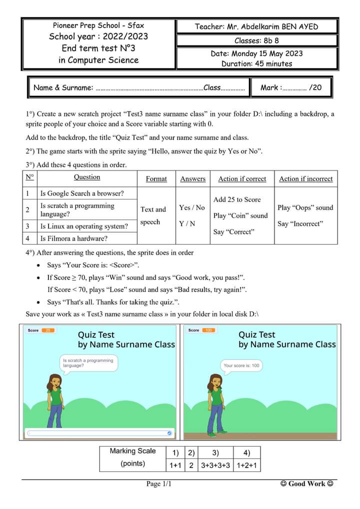 📘 **فرض مراقبة وتأليفي في informatiqueا – السنة 7 أساسي – الثلاثي الأوّل**
