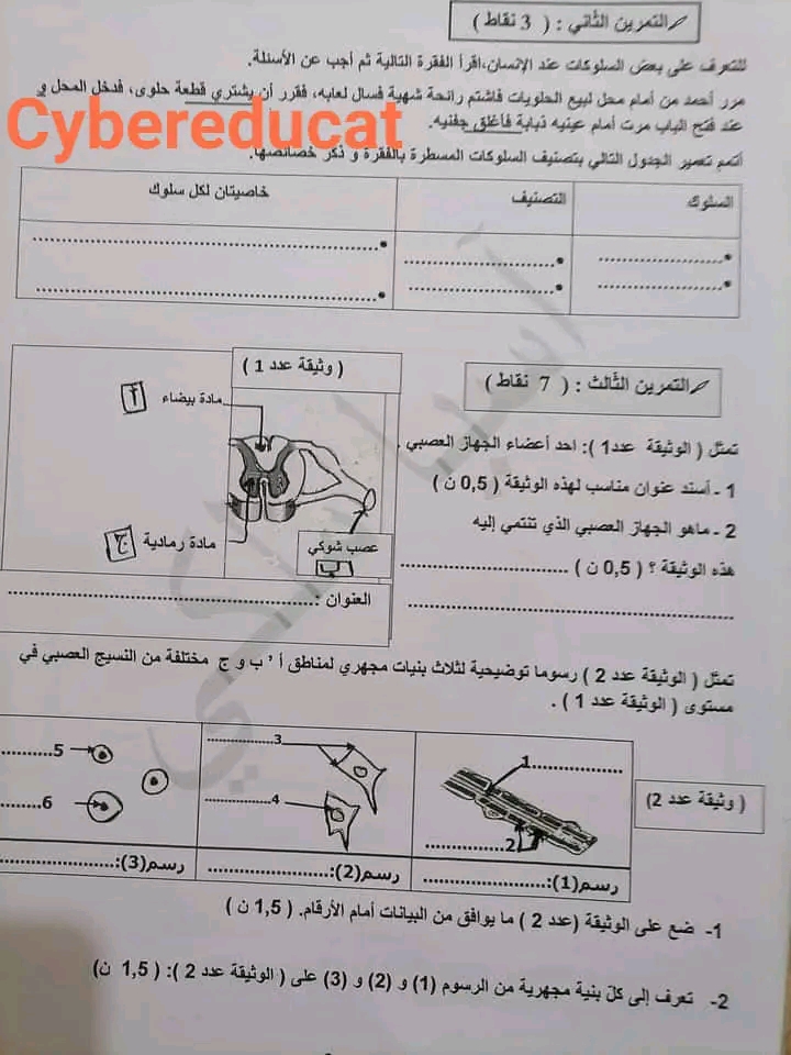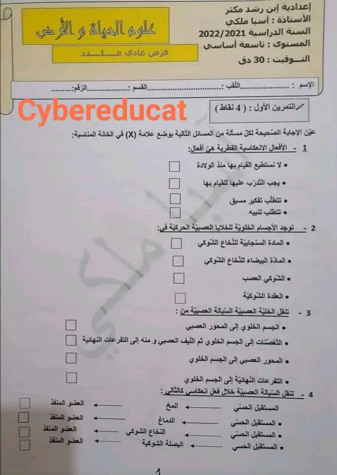 نماذج فروض مراقبة عدد1 في مادة العلوم الطبيعية مرفقة بالإصلاح لتلاميذ التاسعة أساسي 9️⃣9️⃣9️⃣