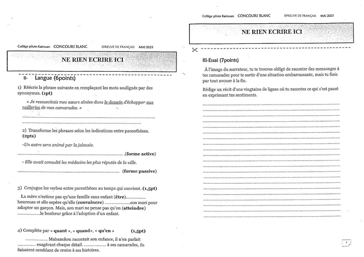 المناظرة الوطنية لختم شهادة التعليم الأساسي لدورة 2023 + مرفق بإصلاح