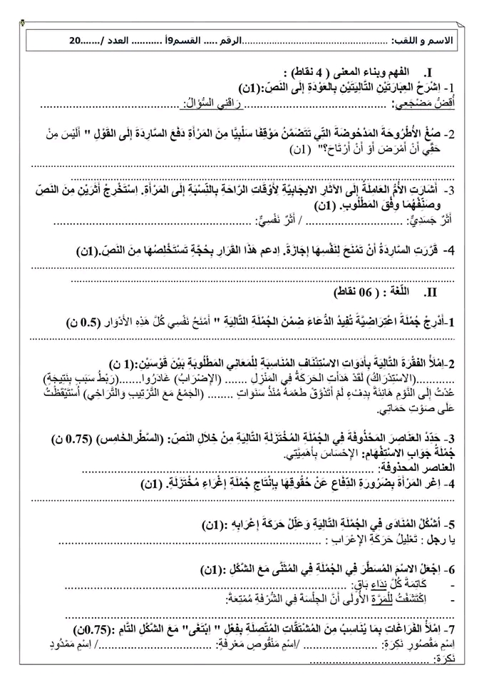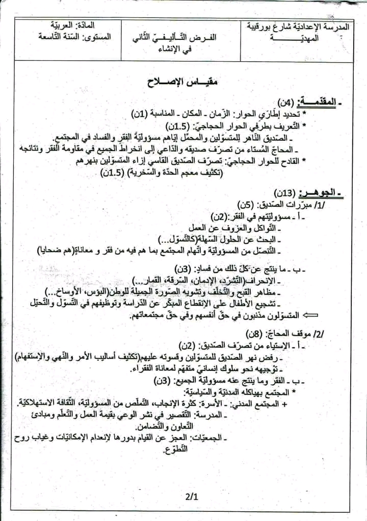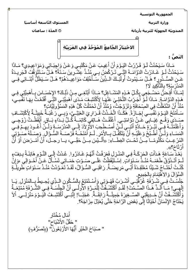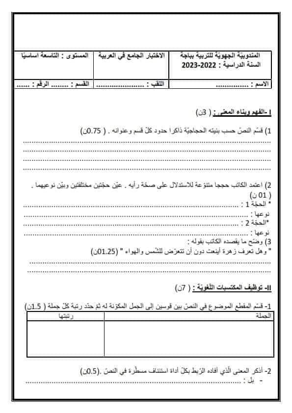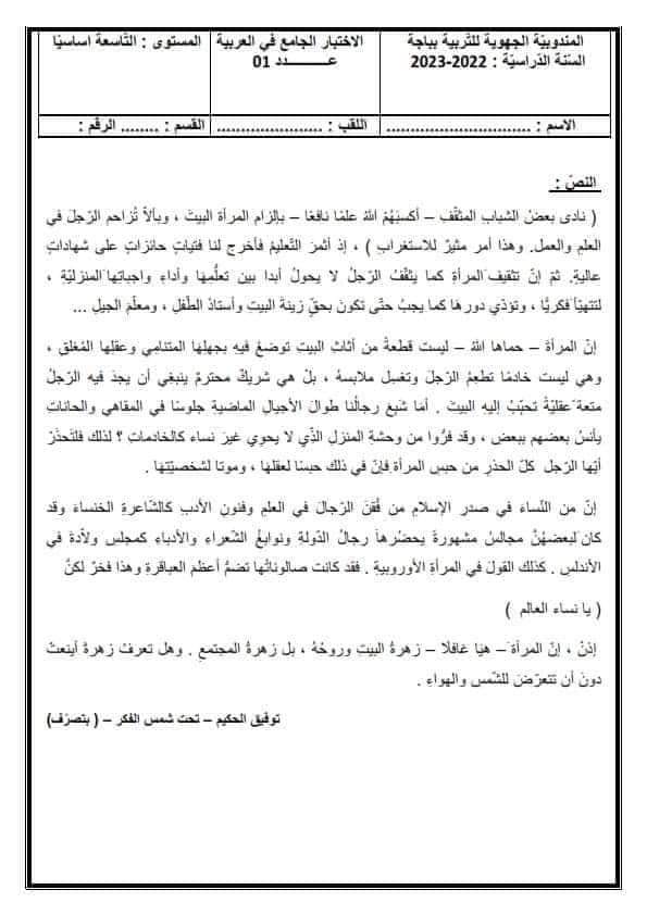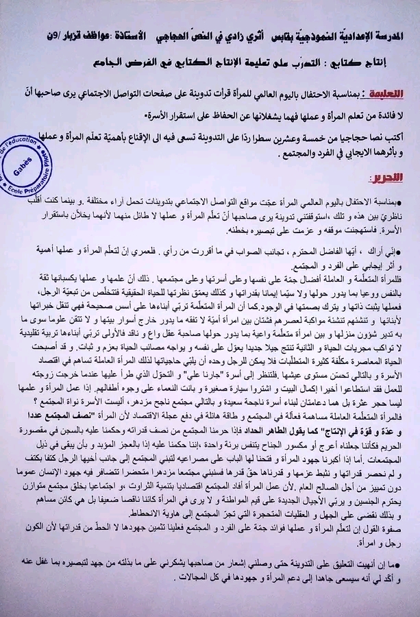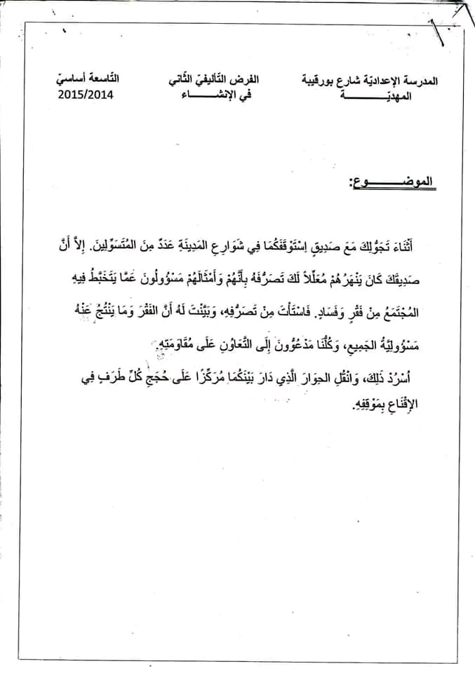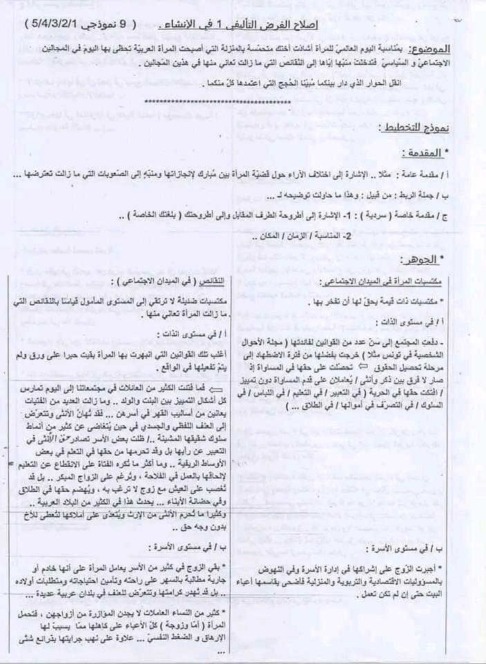 فرض تأليفي عدد 1 في دراسة النص حول محور المدرسة (7 أساسيا)