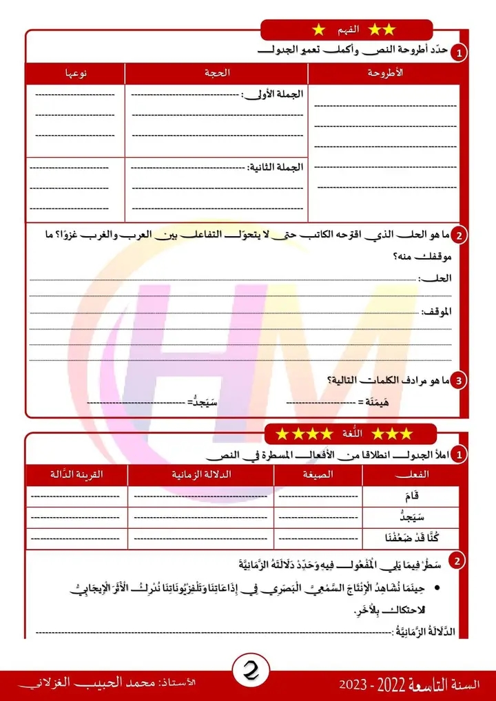 الفرض الجامع عدد 3 مع الإصلاح / محور تفاعل الثقافات / إعداديّة الزهراء بالمهديّة