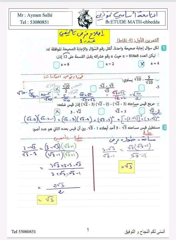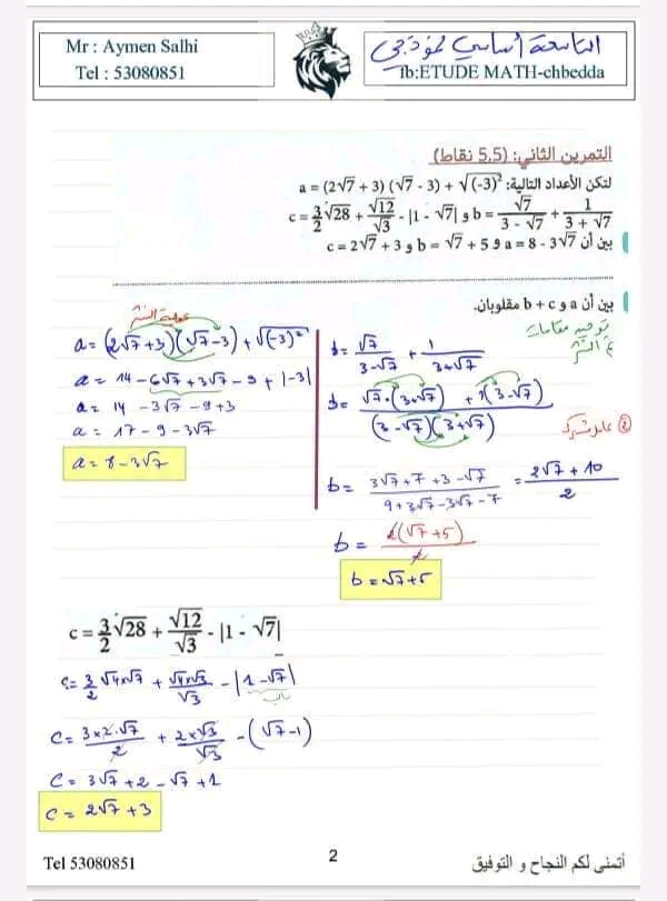 ف.تاليفي في الرياضيات سنة تاسعة اساسي