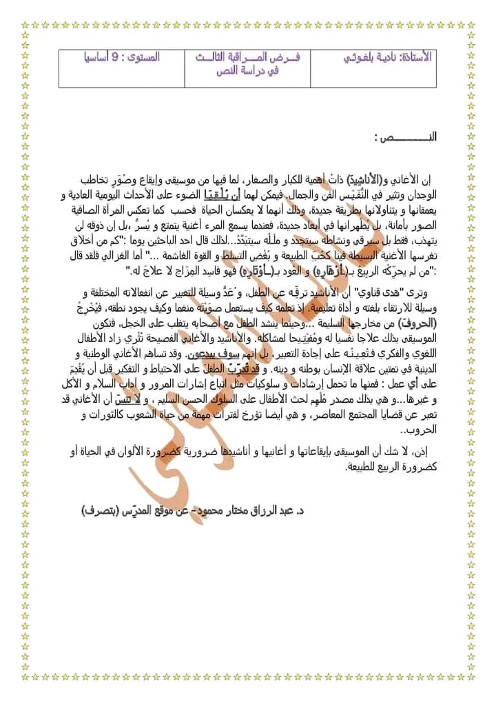 فرض عادي عدد 2 في مادة دراسة النص بالاصلاح