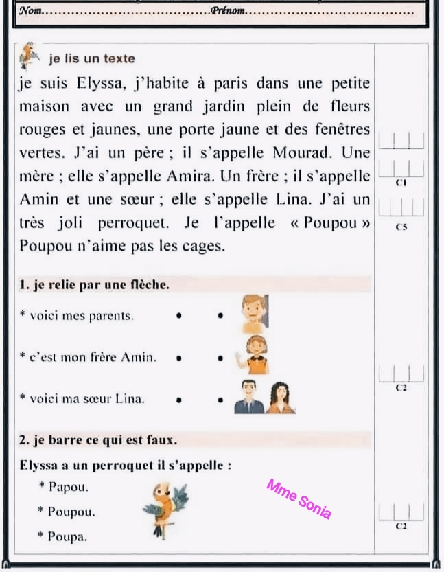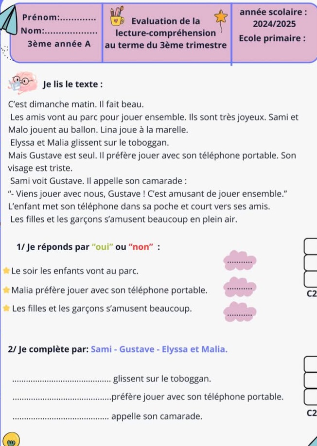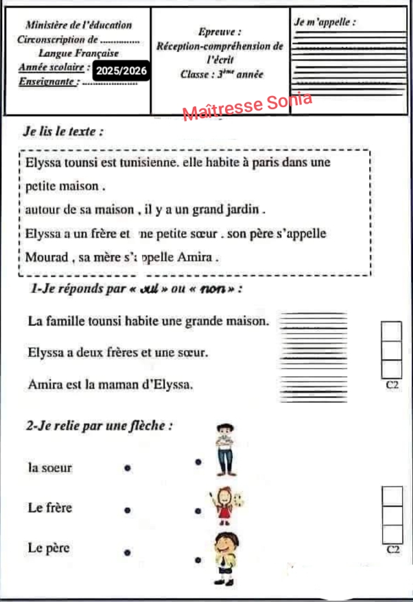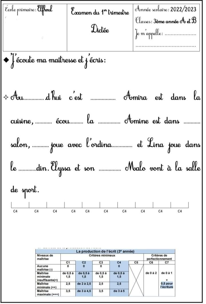 Évaluation français 1er trimestre