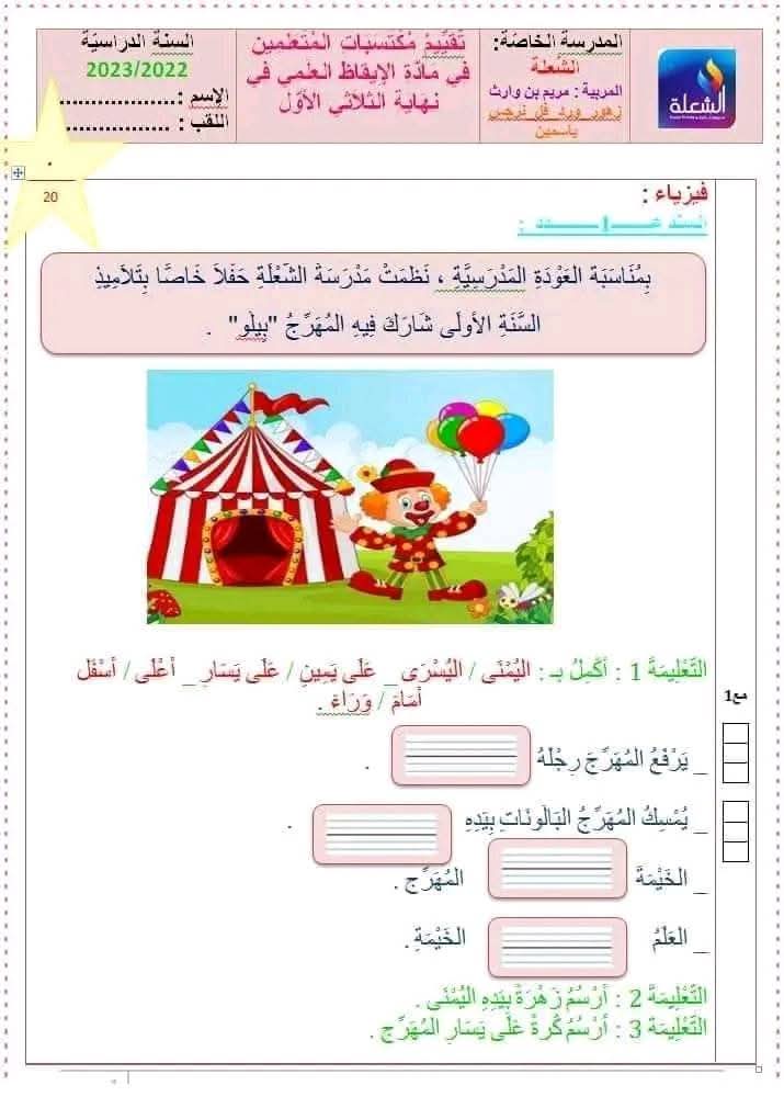تقاييم إيقاظ علمي سنة اولى الثلاثي الثاني