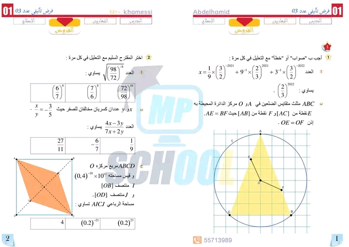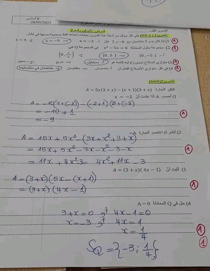 الثامنة أساسي فرض تأليفي عدد3 مع الاصلاح