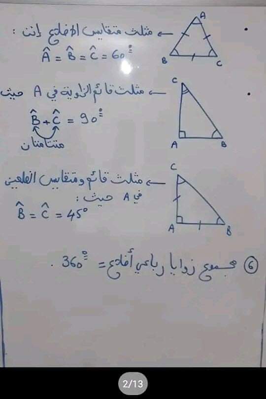 ثامنة اساسي الزوايا الحاصلة عن تقاطع مستقيمين متوازيين مع مستقم