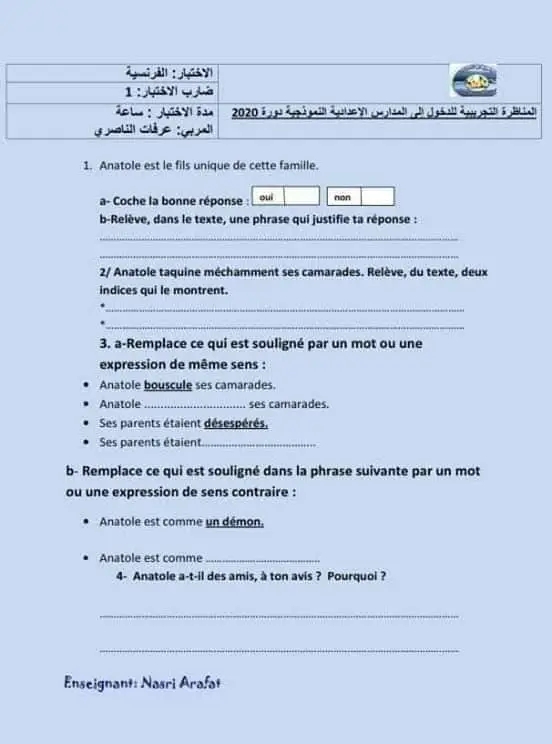 مناظرة تجريبية في اللغة الفرنسية مرفقة بالاصلاح