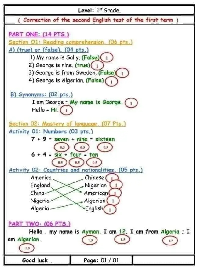 تمارين مرفوقة بالاصلاح سنة سادسة