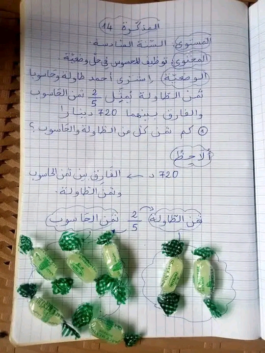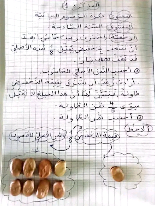 المحتوى ..توظيف المحسوس في حل وضعية رياضية