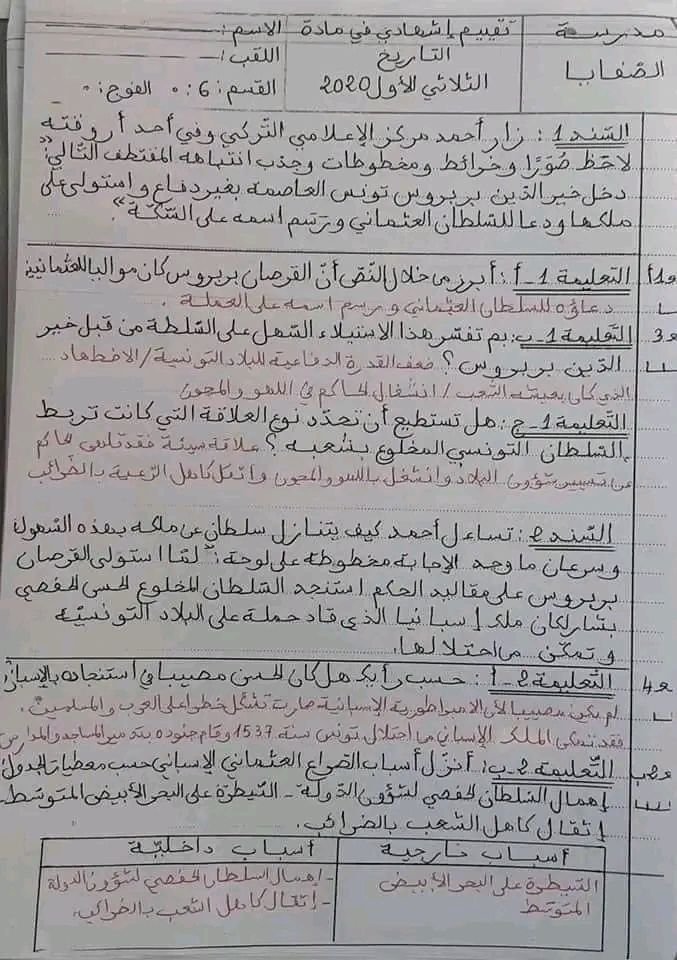 تقييمات تاريخ الثلاثي الثاني سنة سادسة