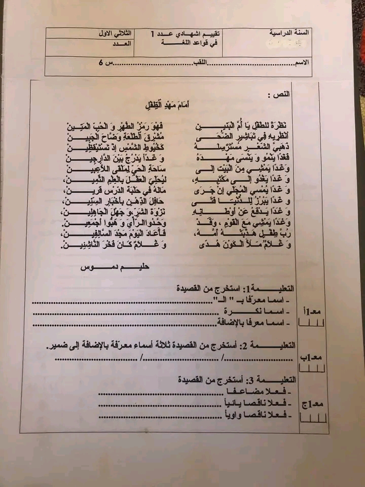 السنة السادسة ابتدائي