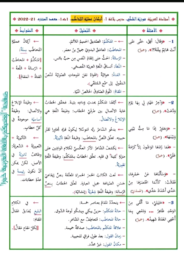 درس في البلاغة: أركان عملية التخاطب (أولى ثانويا)