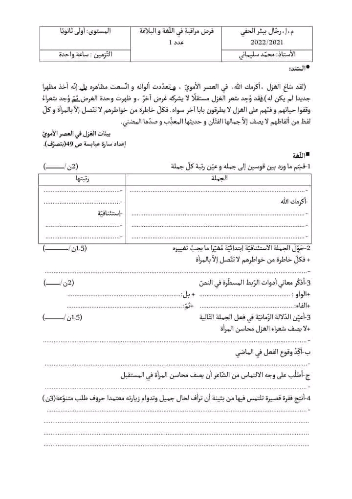 فرض مراقبة عدد 1 في اللغة و البلاغة