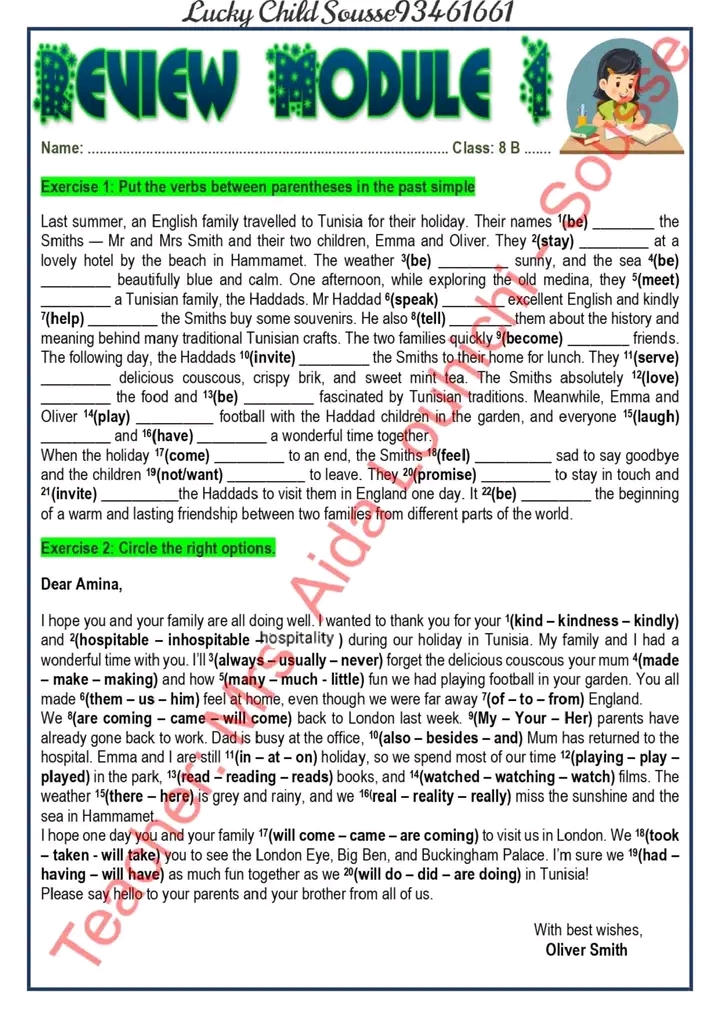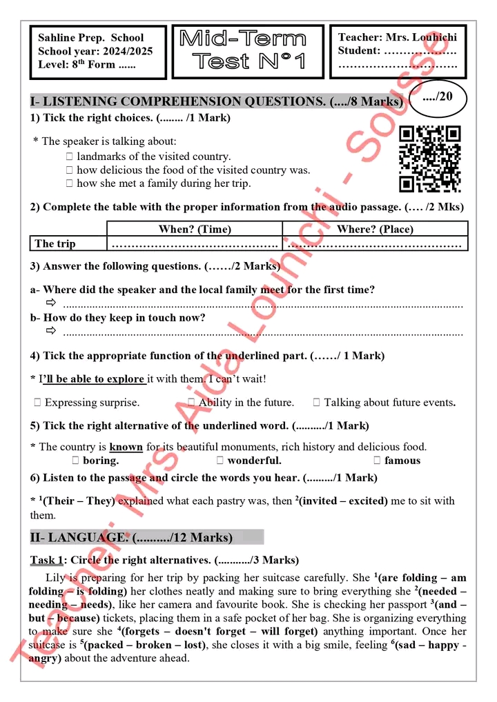 📘 **Anglais – Examen complet pour les élèves de 7e année**+Correction
