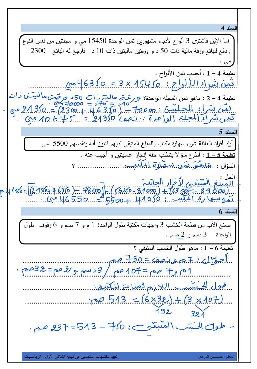 تقييم أنتاج كتابي السنة السادسة الثلاثي الاول مع الاصلاح