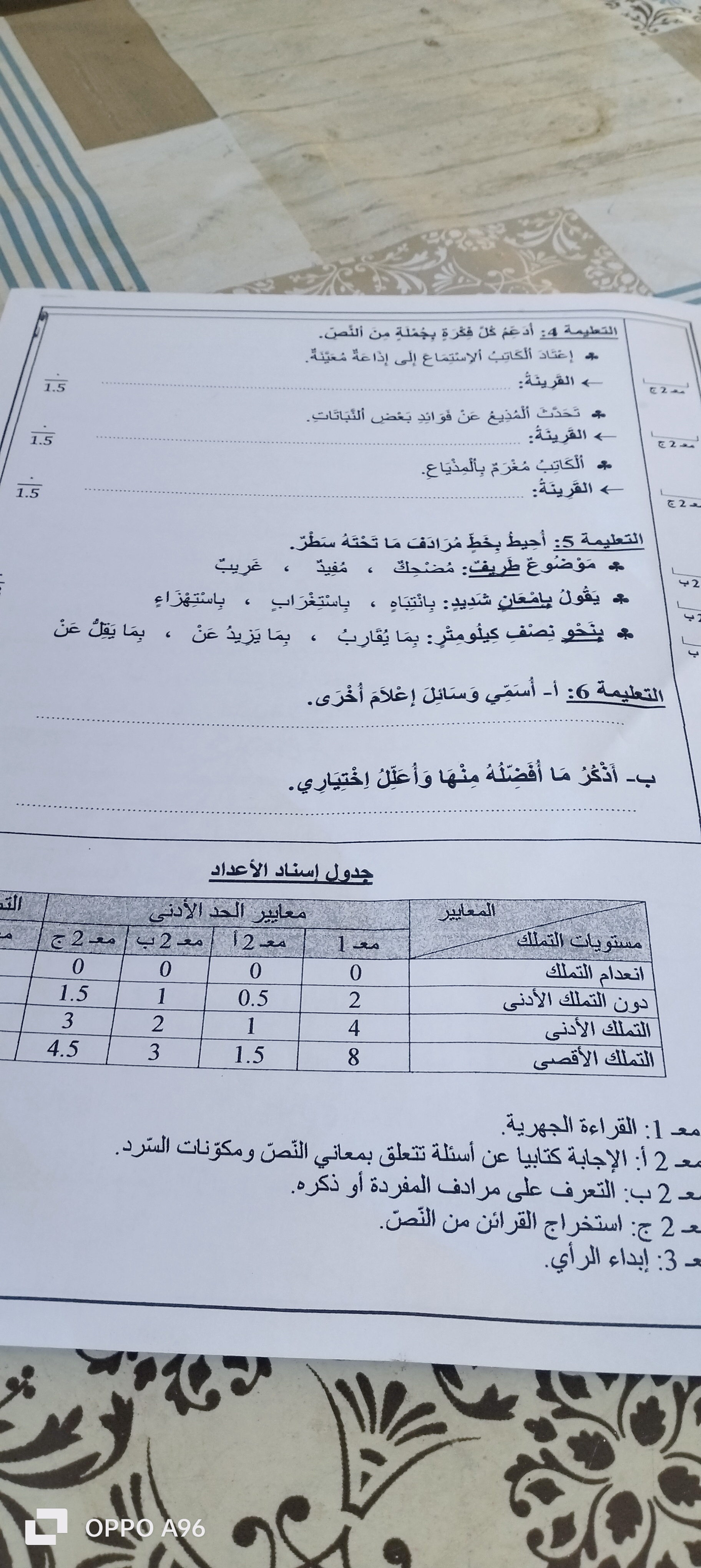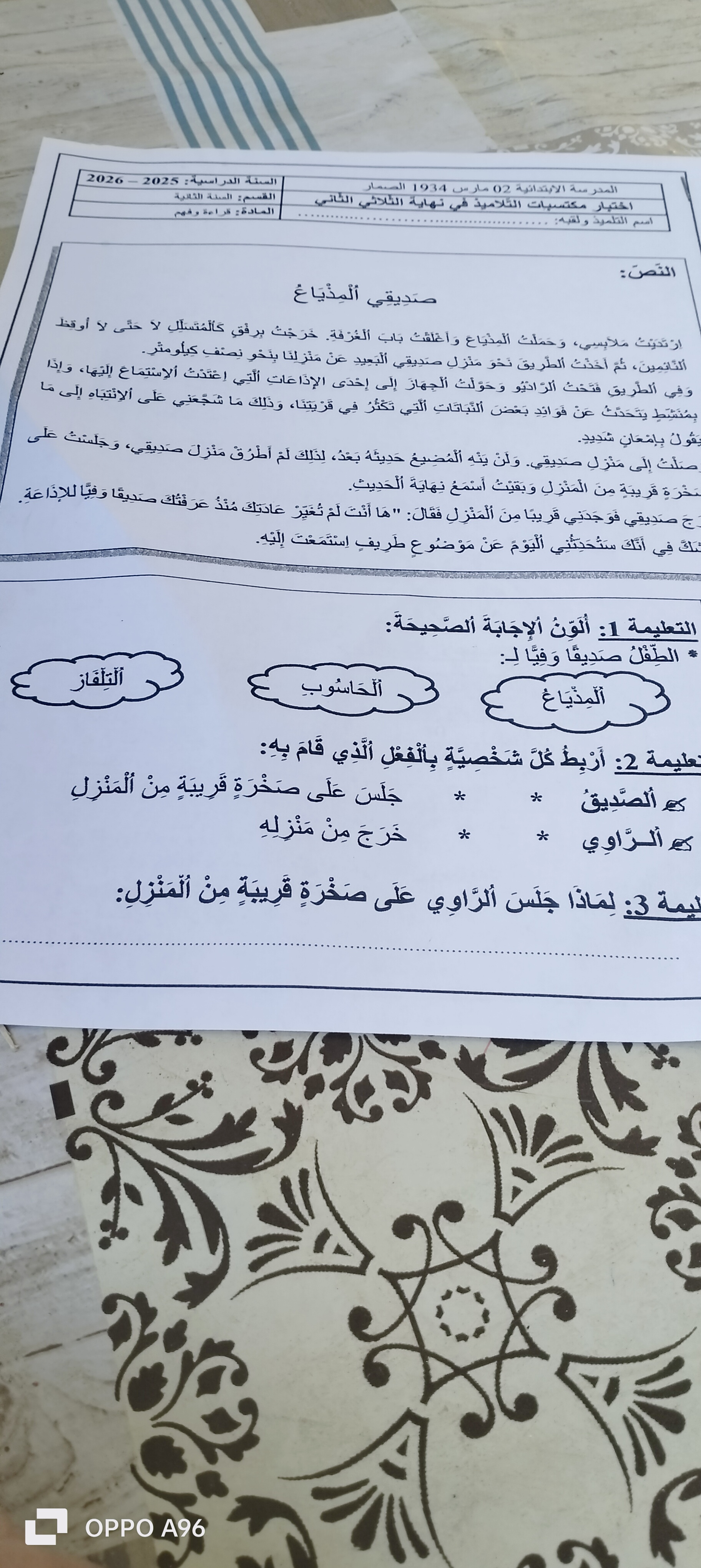 اختبار الثلاثي الثاني قراة سنة ثانية