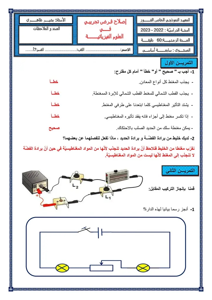 نموذج لفرض تأليفي عدد3 مرفق بالإصلاح