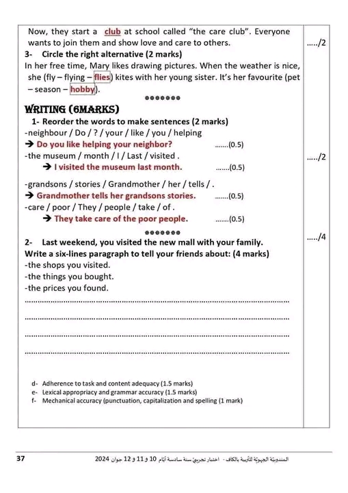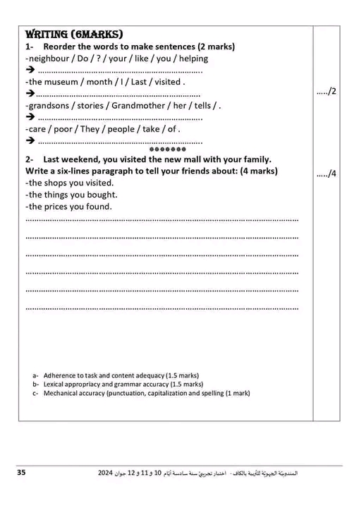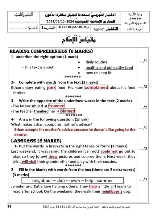 الاختبار التجريبي استعدادا لاجتياز مناظرة الدخول للمدارس الإعدادية النموذجية في الإنقليزية +الإصلاح