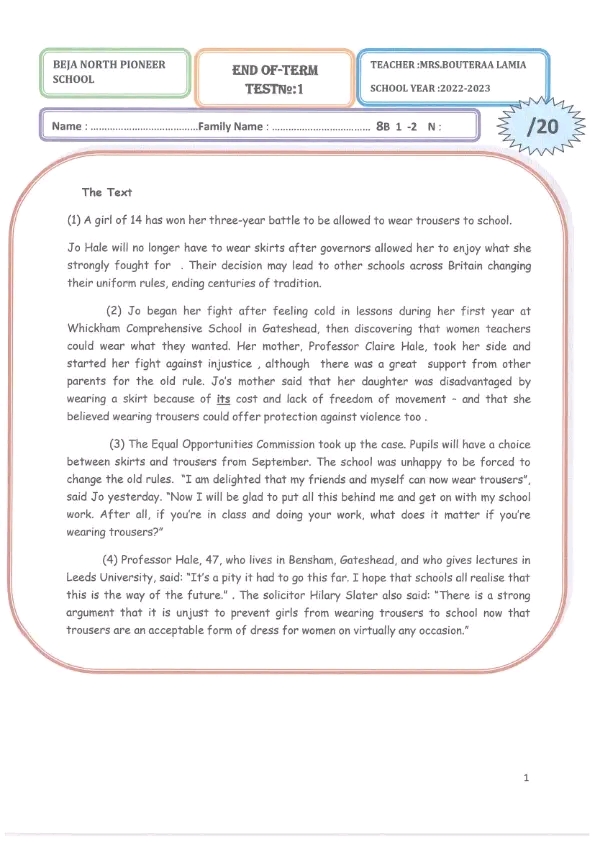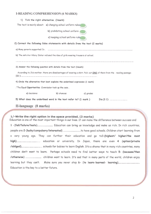 اصلاح فرض مراقبة عدد 1 للسنوات الثامنة