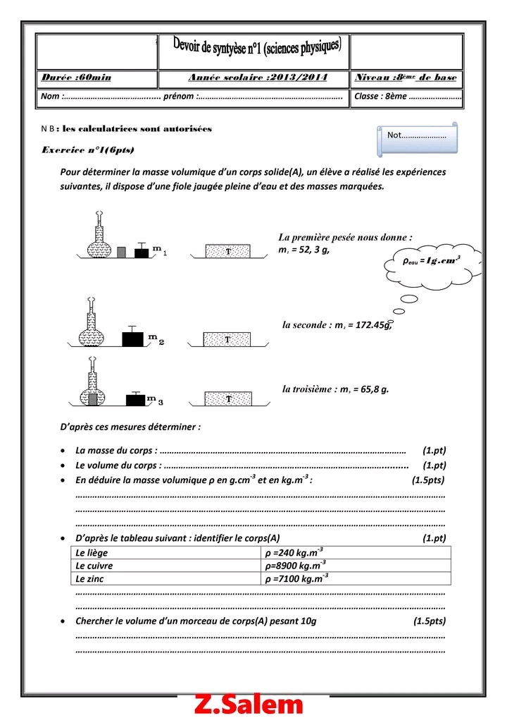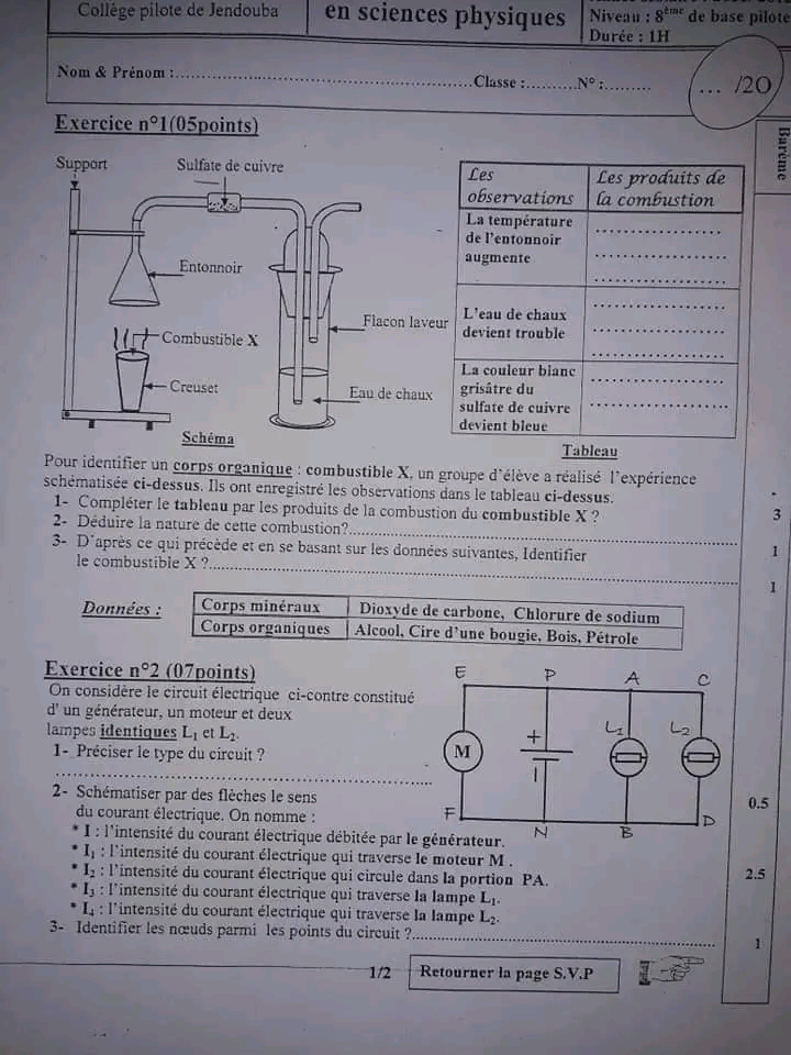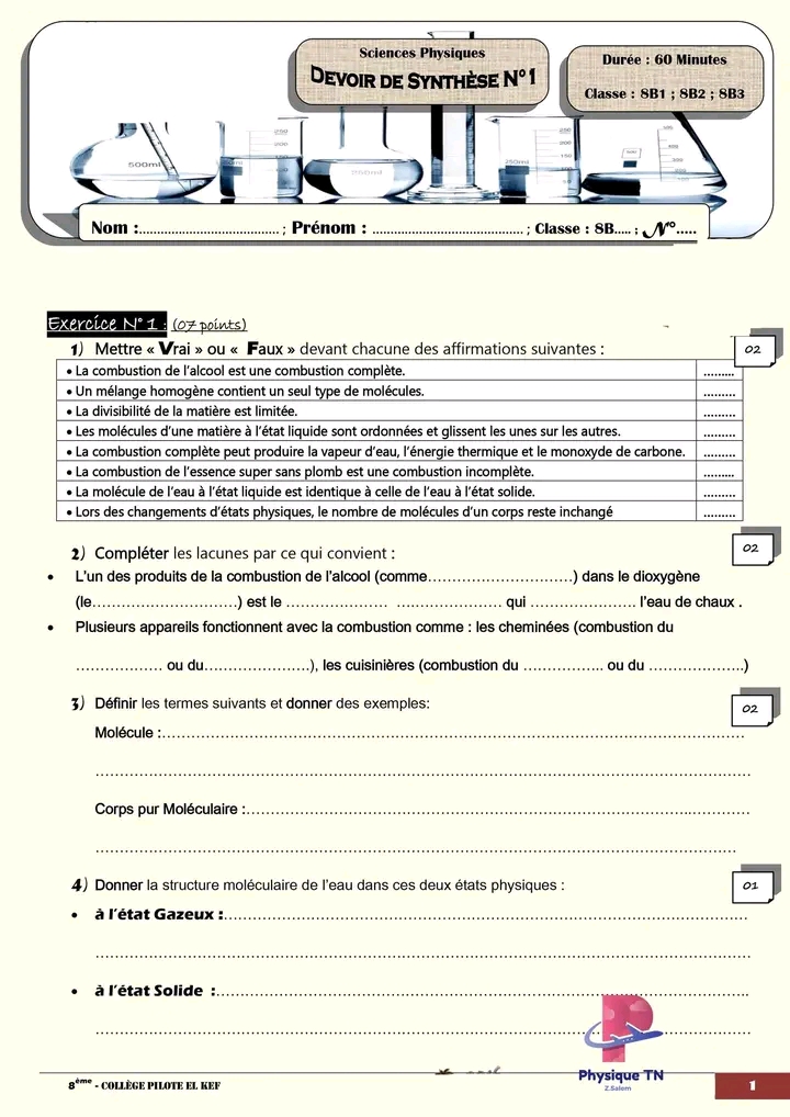فروض تأليفية و مراقبة السنة الثامنة أساسي تكنولوجيا