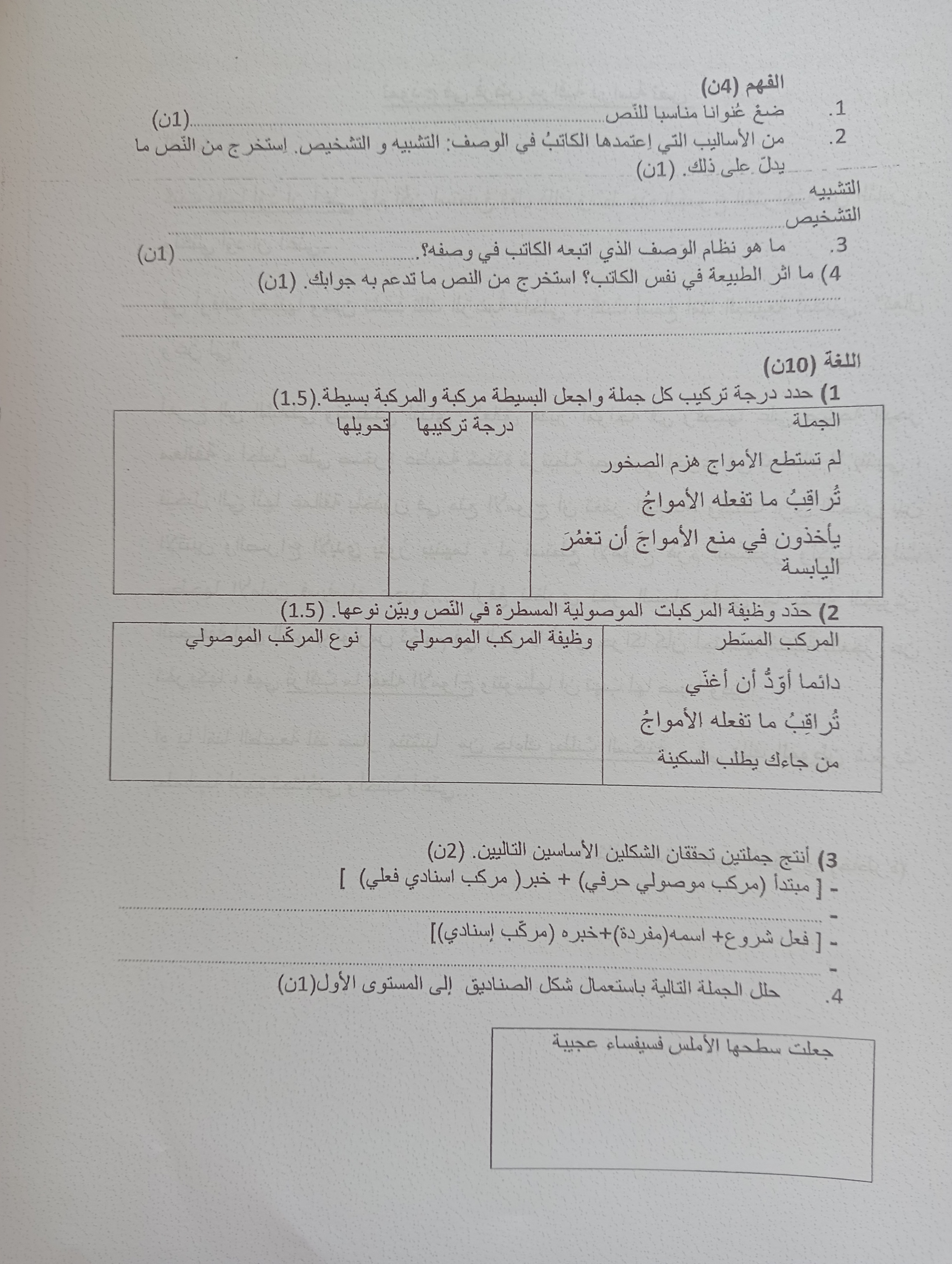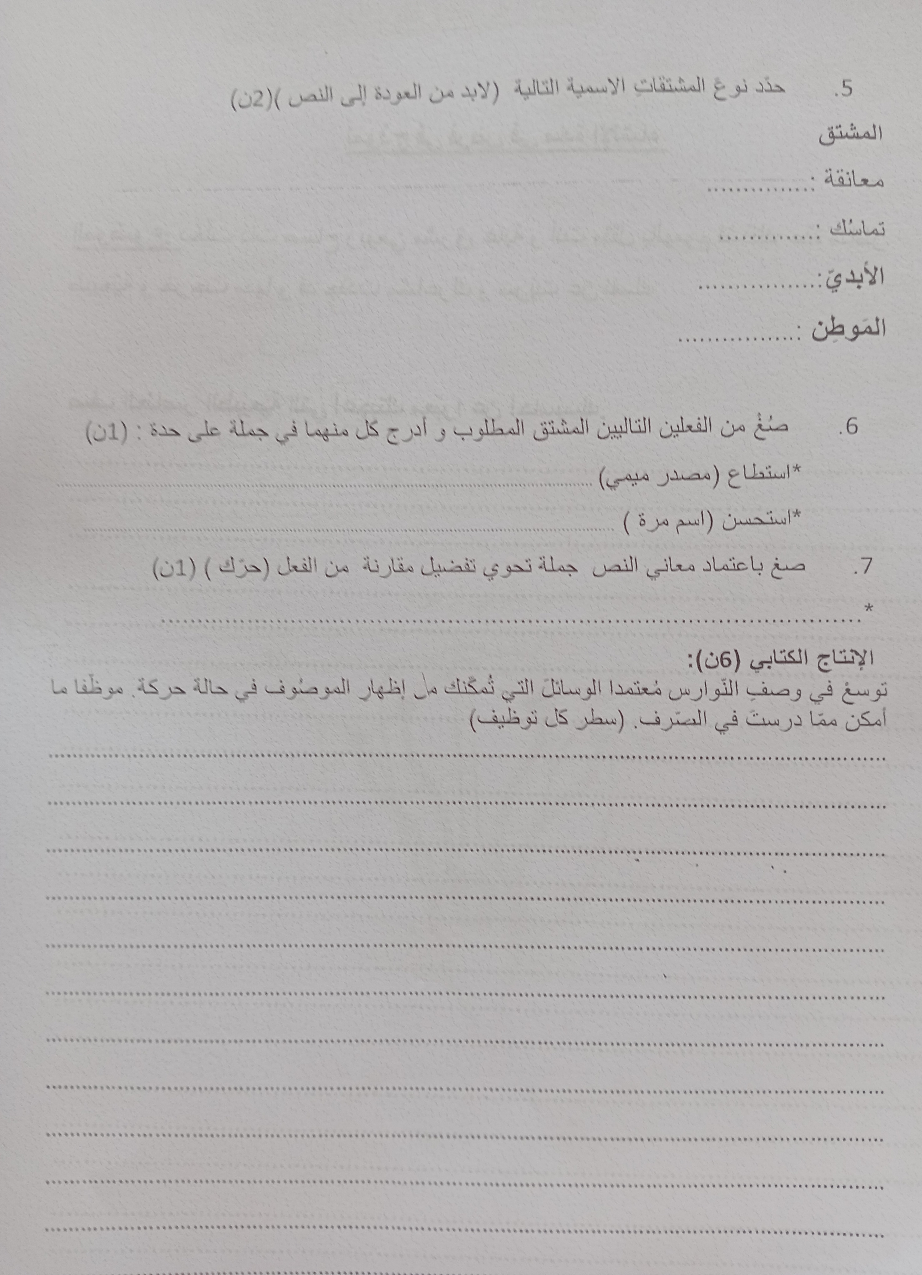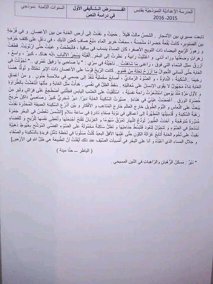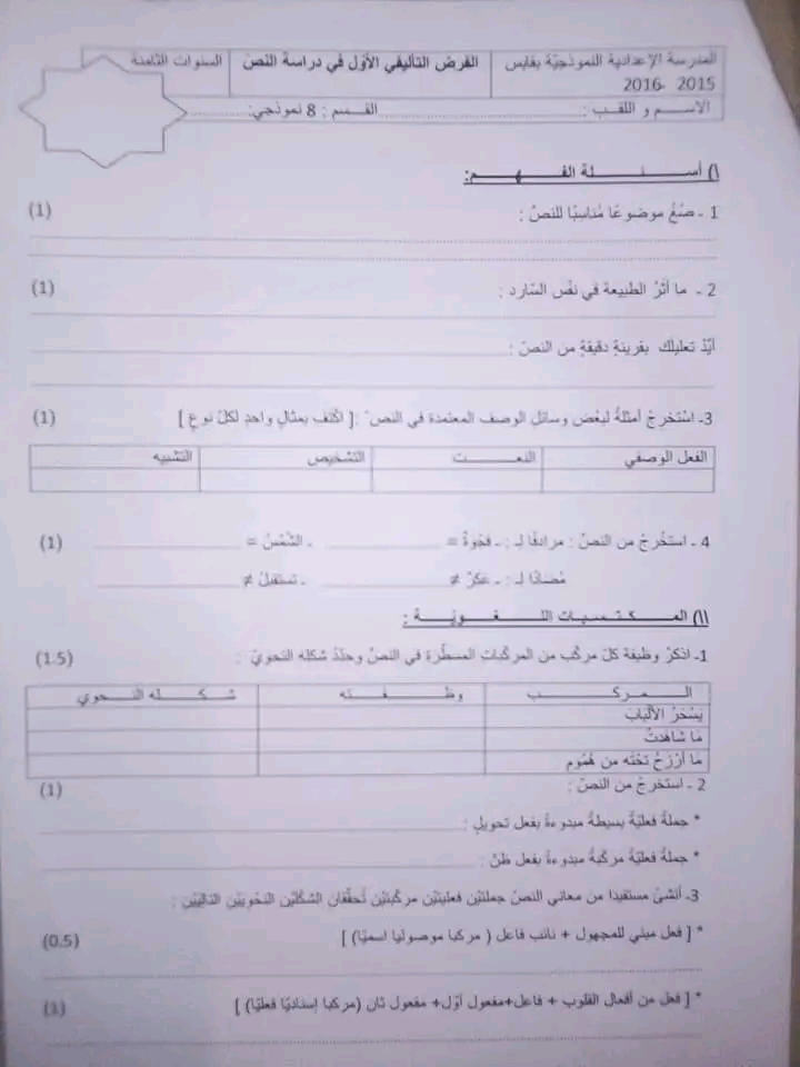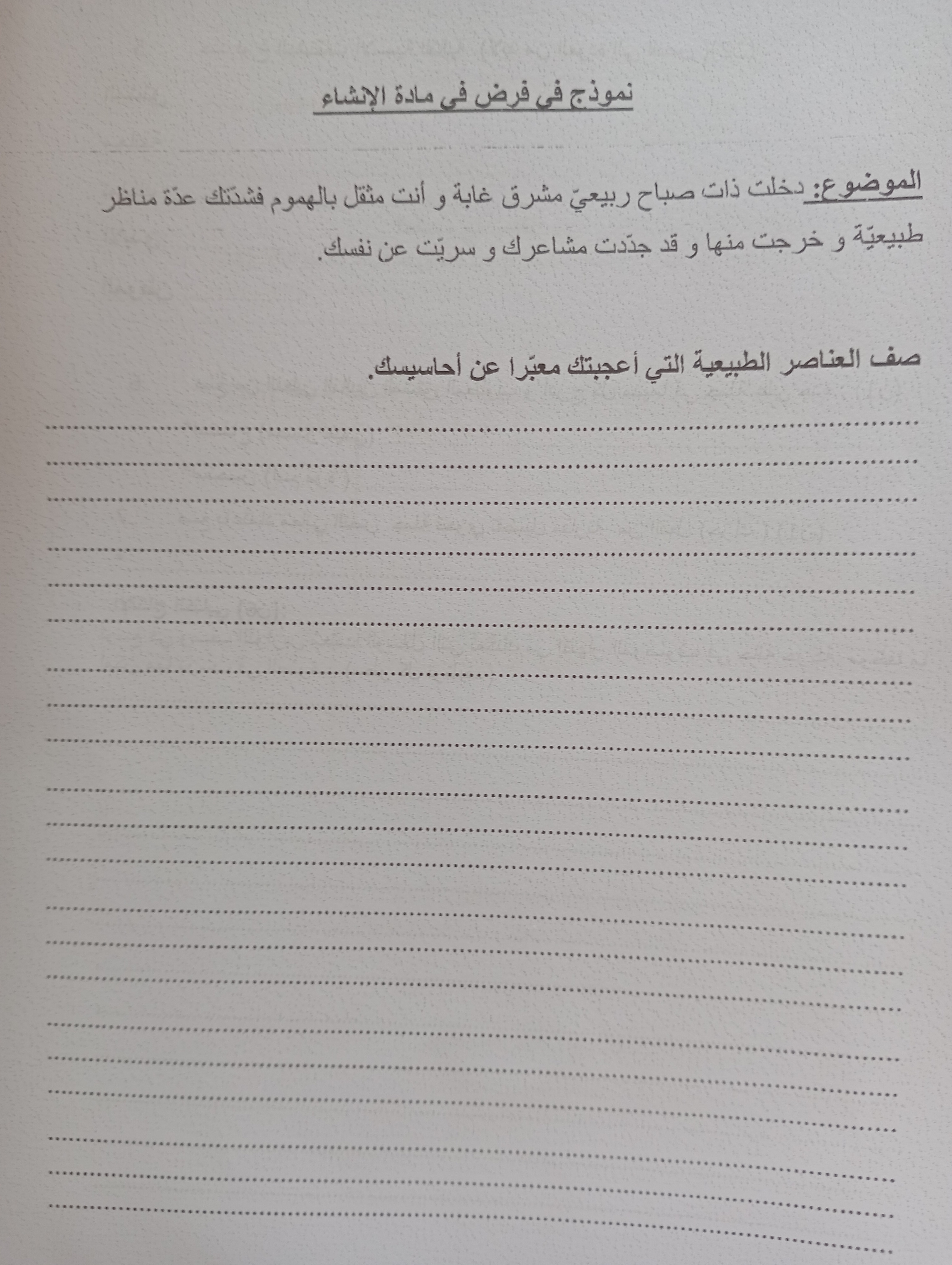 فرض مراقبة عدد 2 في مادة الانشاء نموذجي