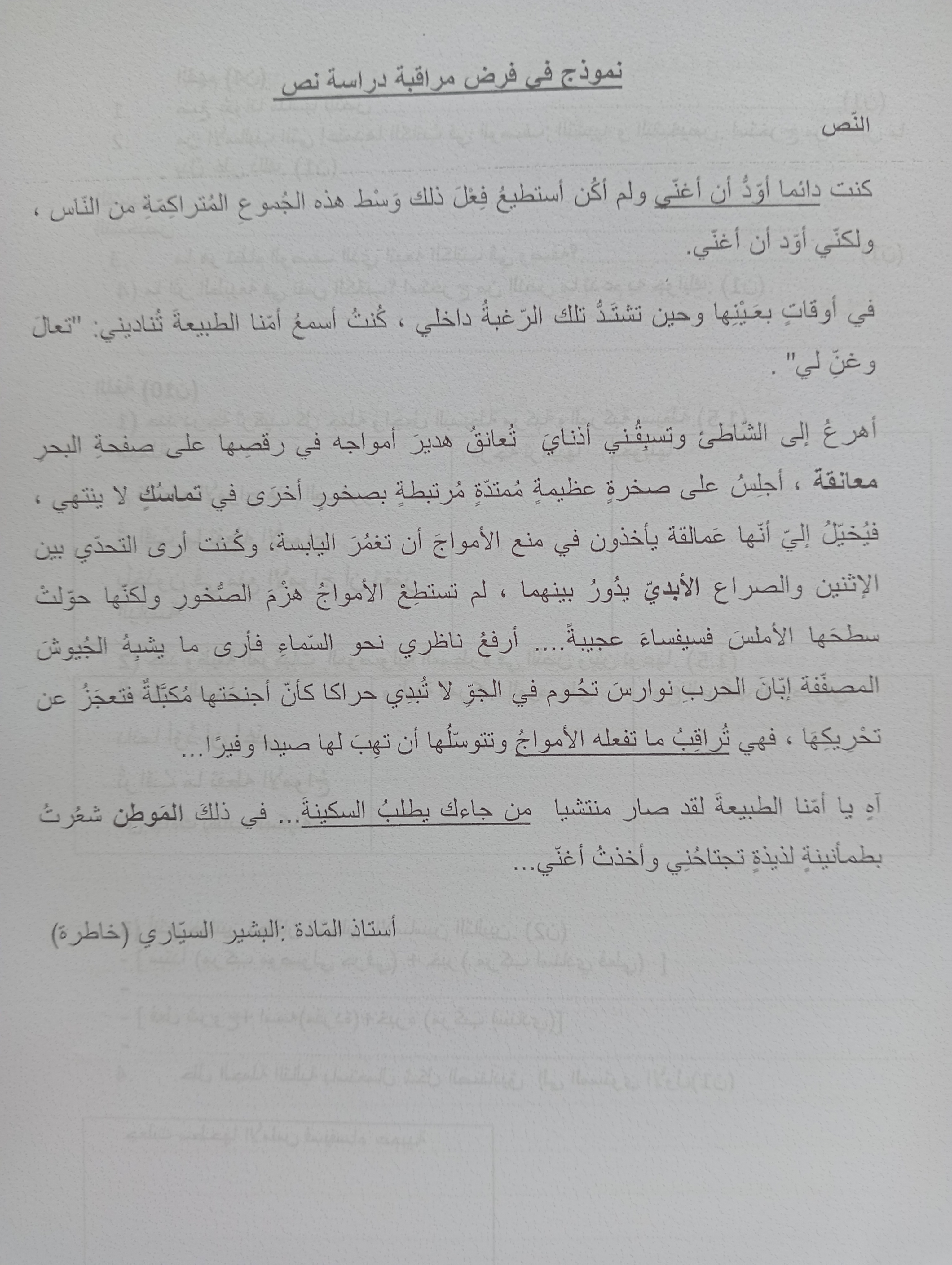 فرض مراقبة عدد 2 في مادة دراسة النص