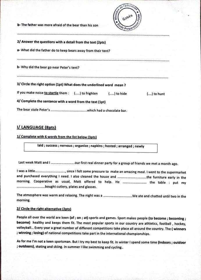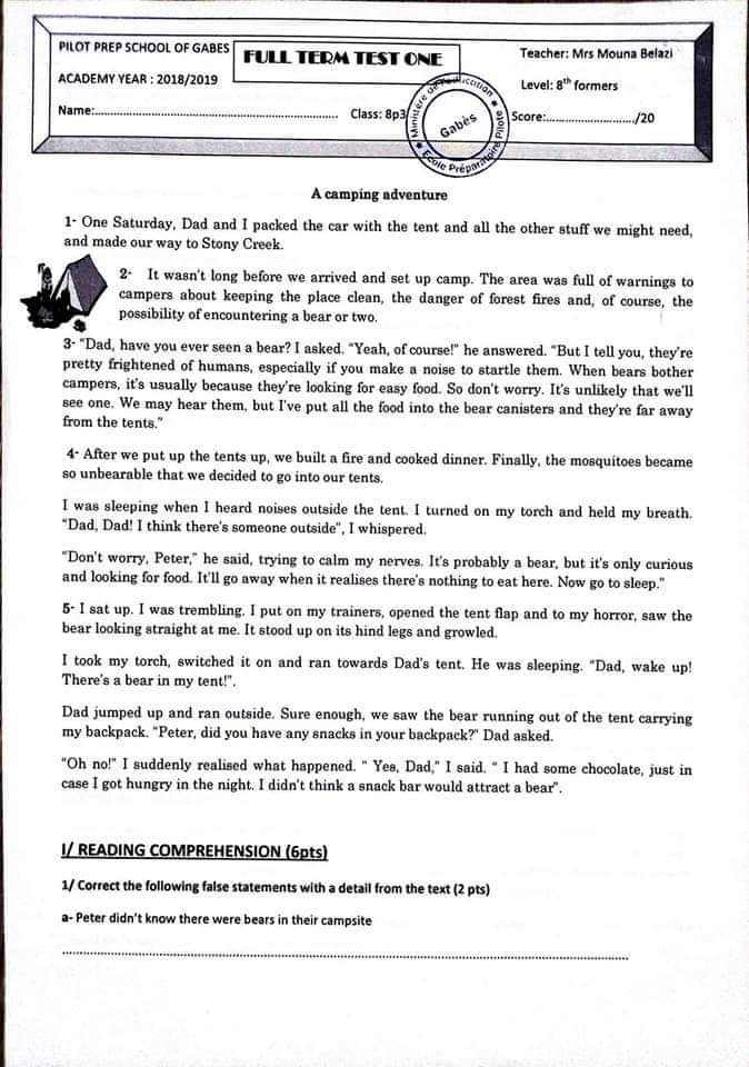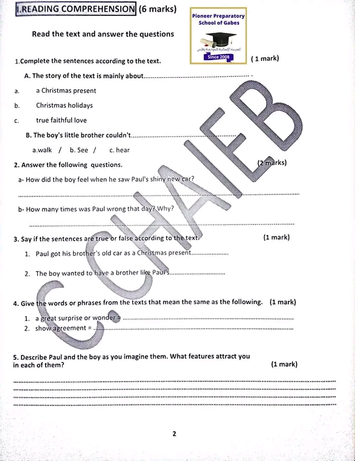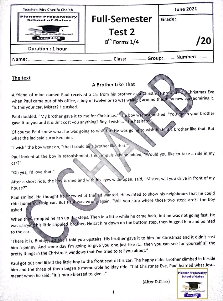 الفرض التأليفي في مادة الأنقليزية