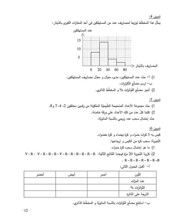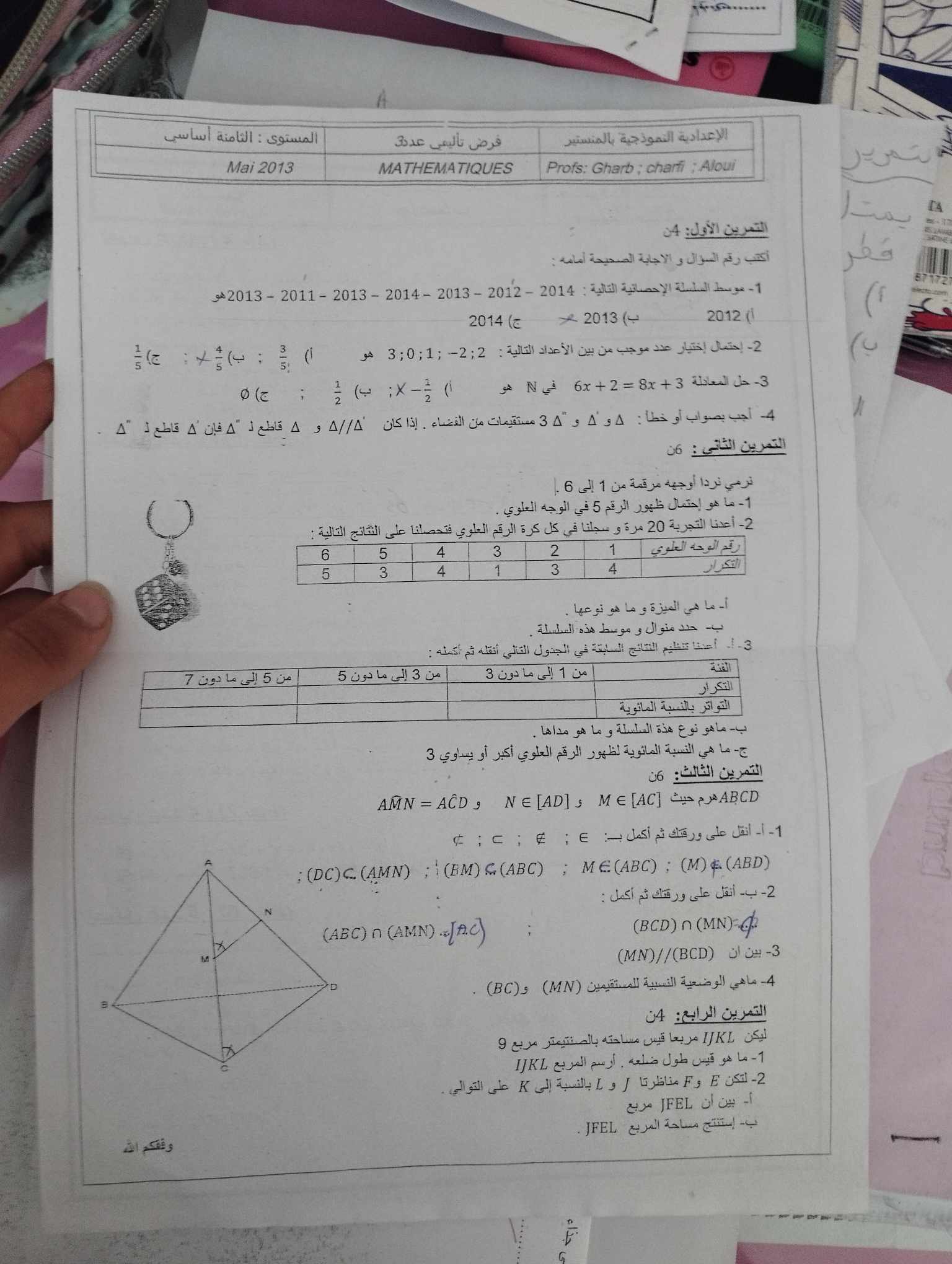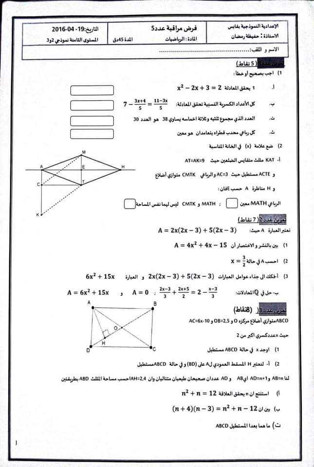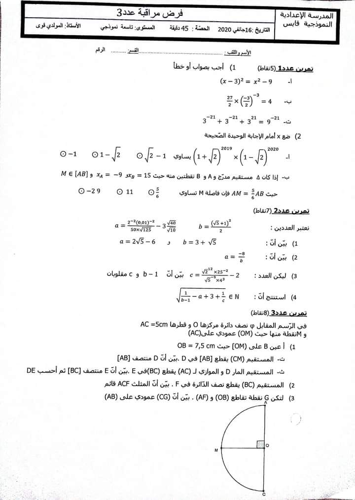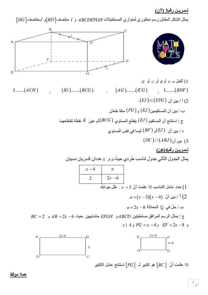 فروض مراقبة في مادة الرياضيات نموذجي