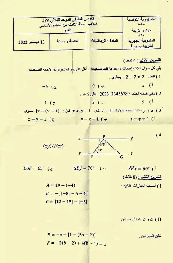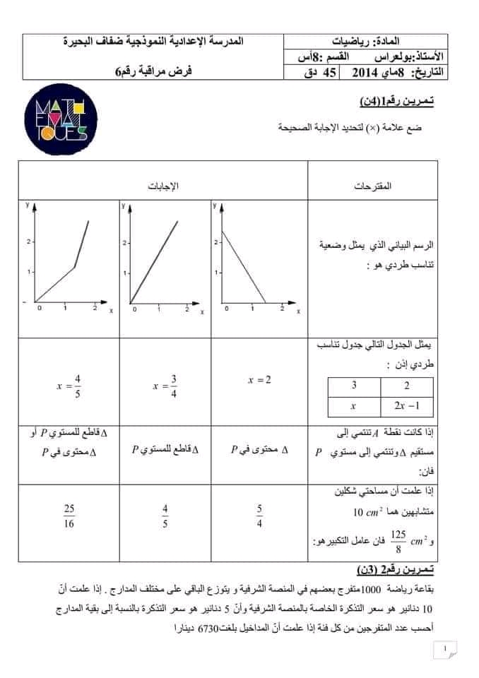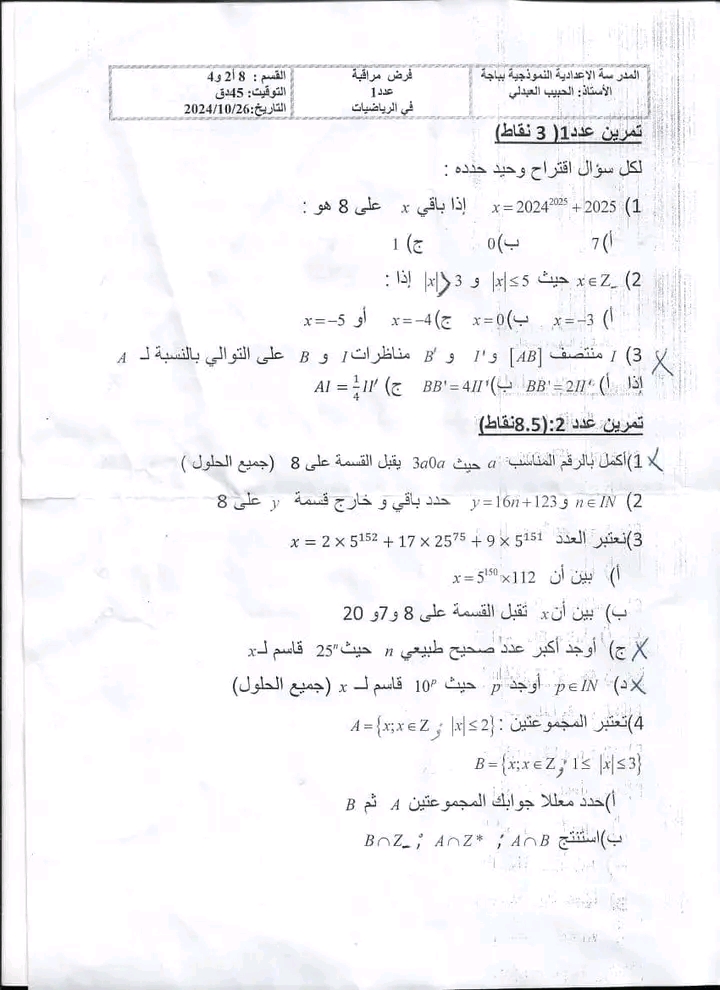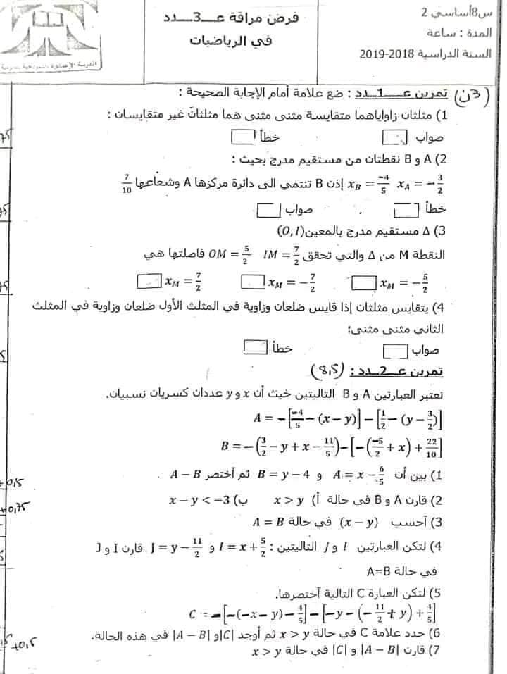 اصلاح فرض مراقبة عدد 1 للسنوات الثامنة