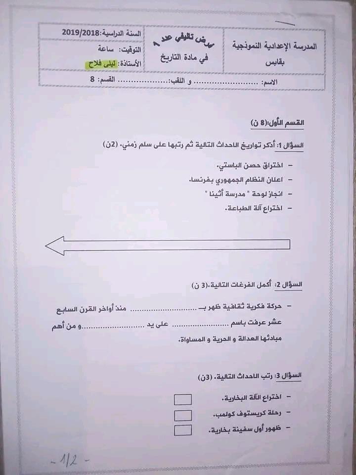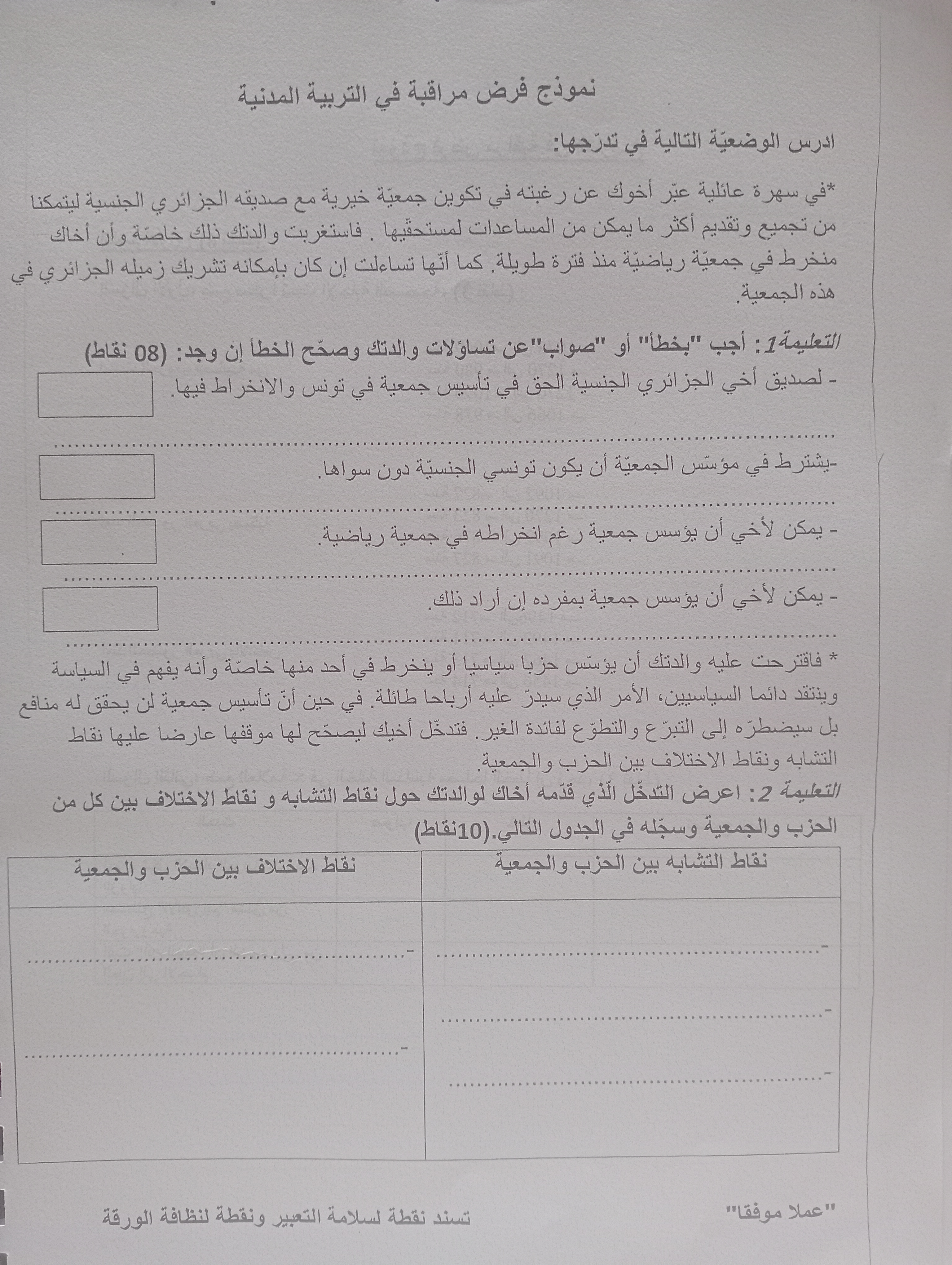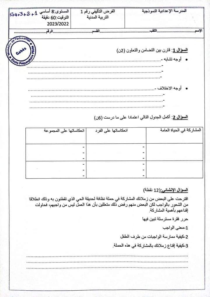 فرض مراقبة عدد 2 في مادة التربية المدنية
