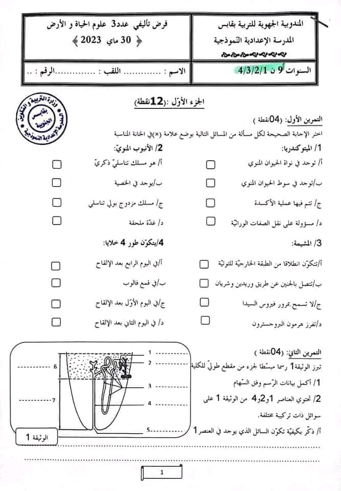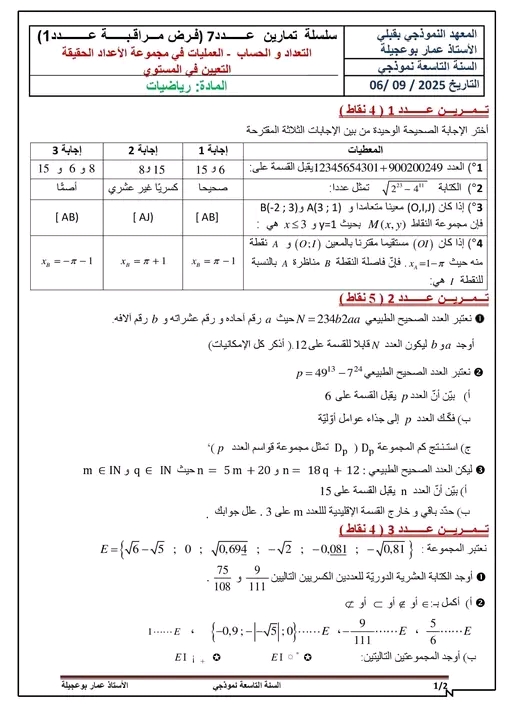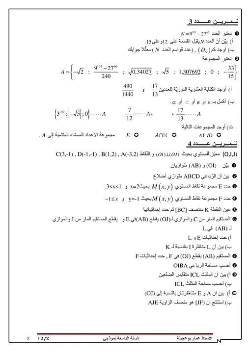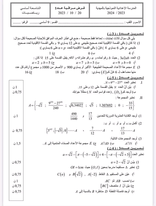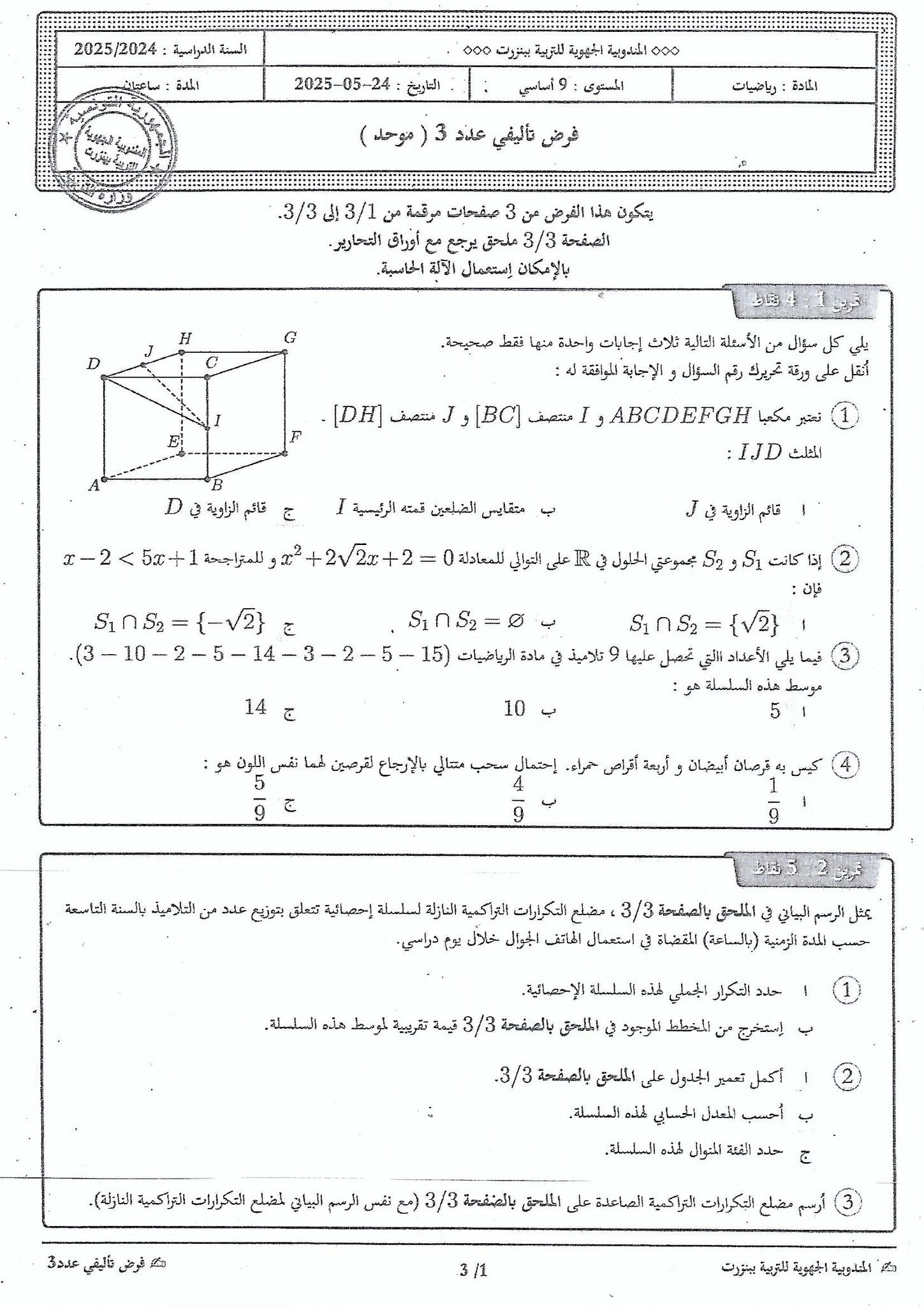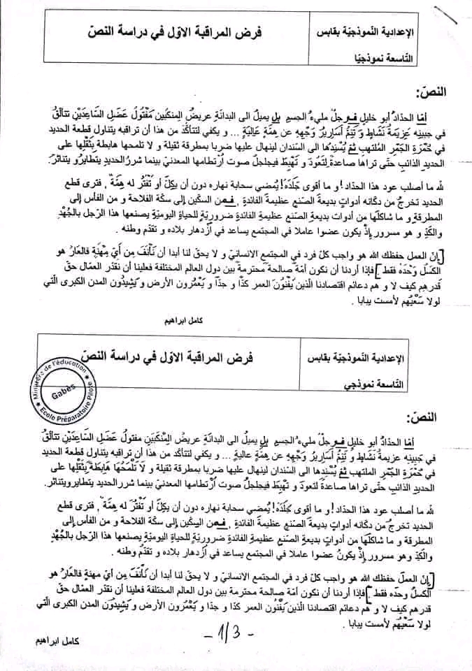 فرض مراقبة عدد 1 تاسعة نموذجي
