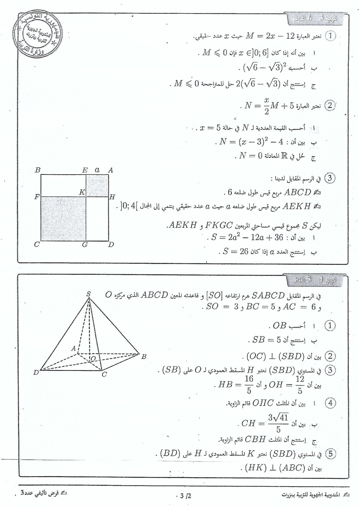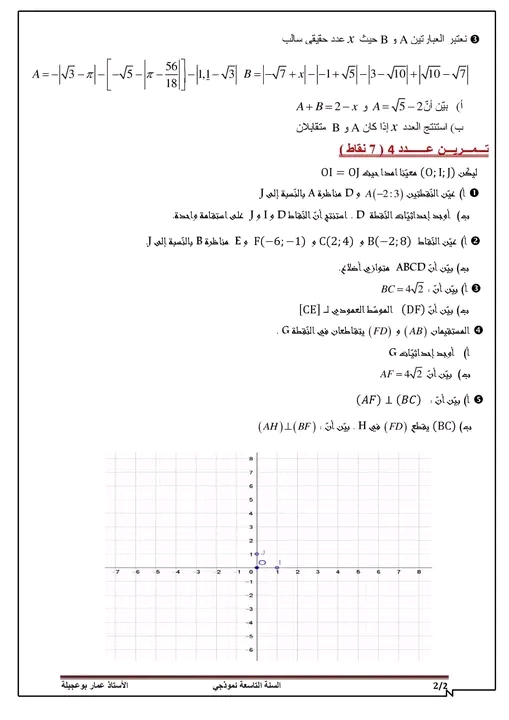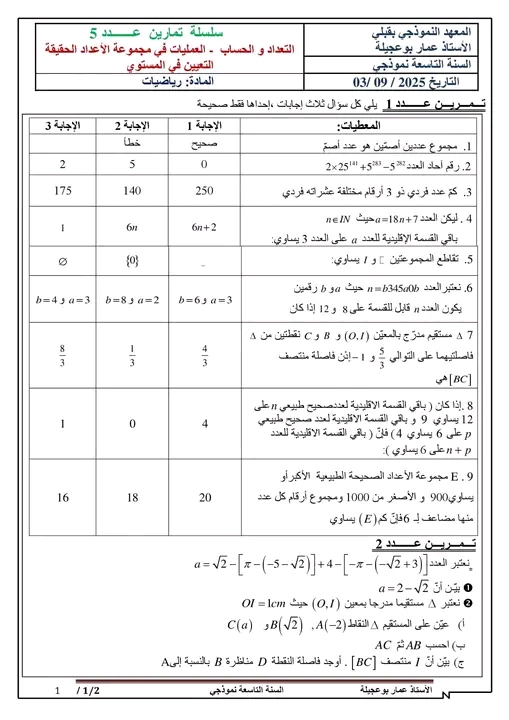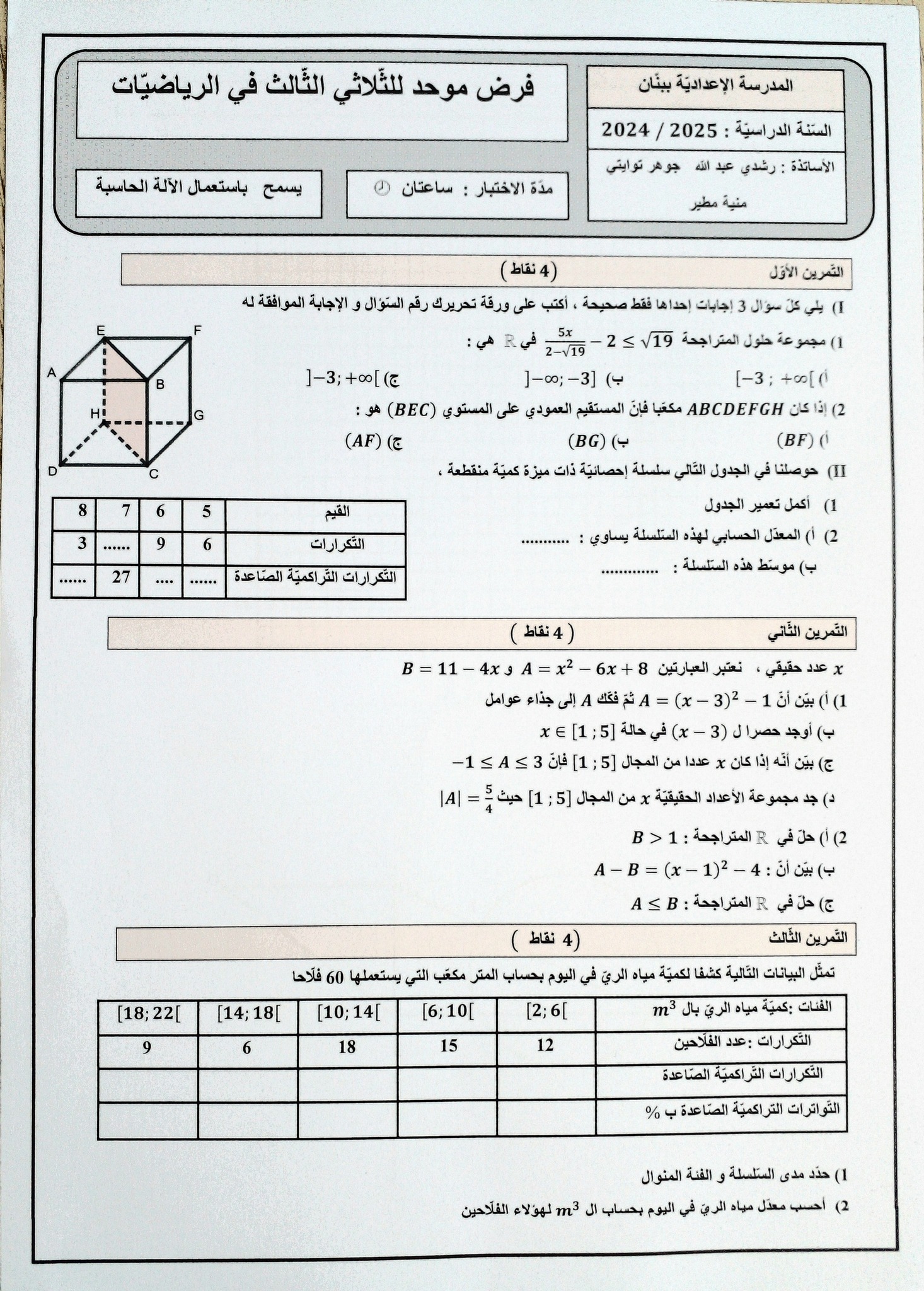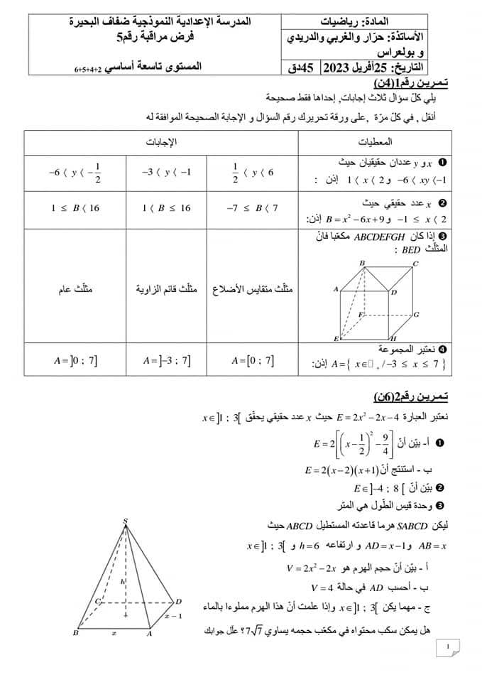 فرض مراقبة عدد 1 تاسعة نموذجي