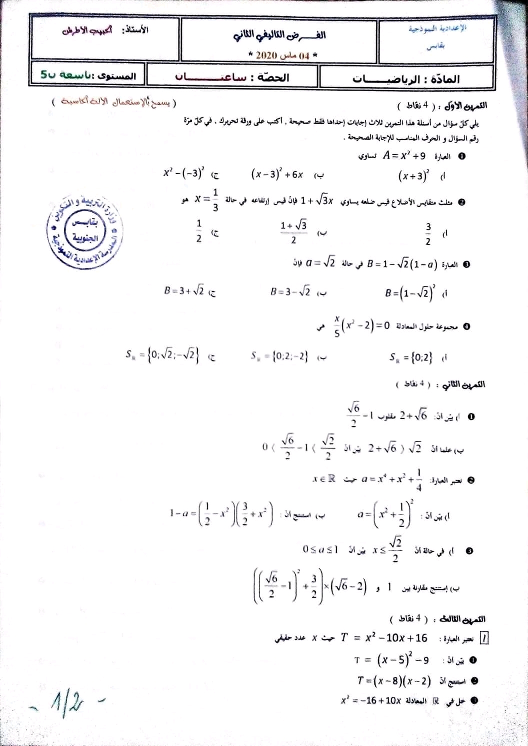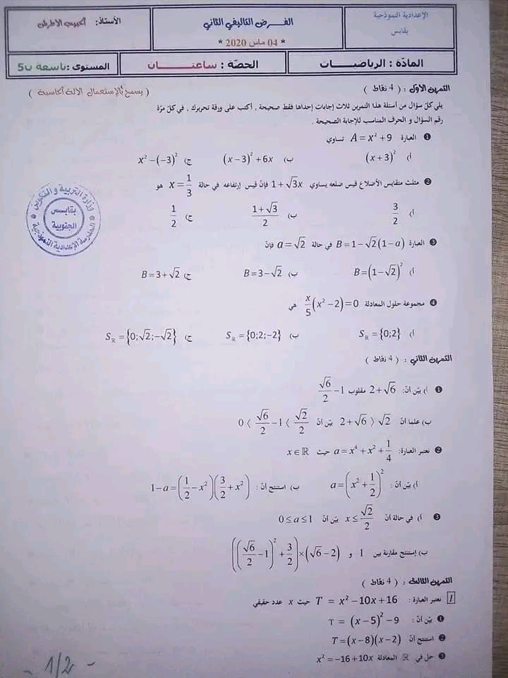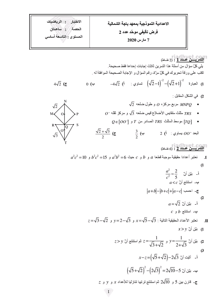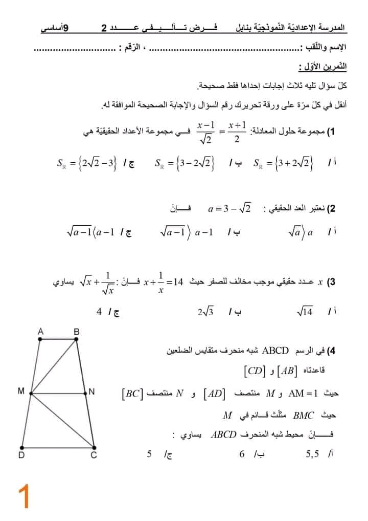 Ds2 math pilote 9ème
