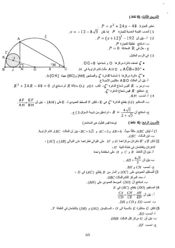 فروض المراقبة رياضيات الثلاثي الثالث