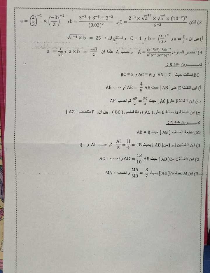 🎯التاسعة اساسي🎯رياضيات🎯