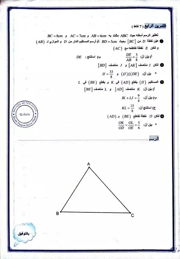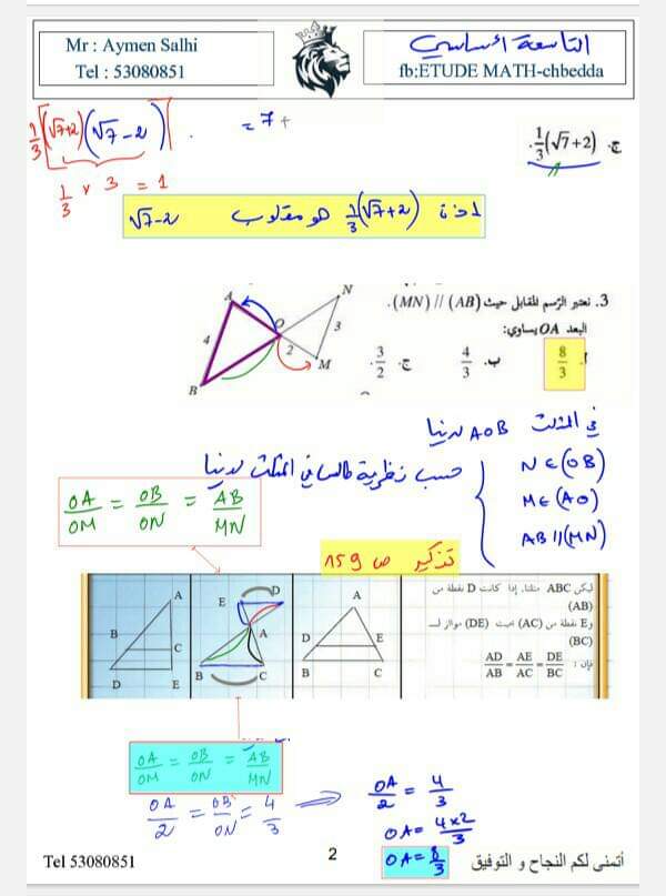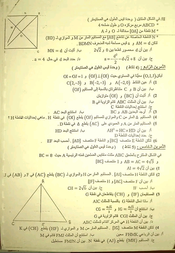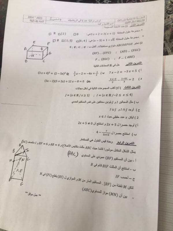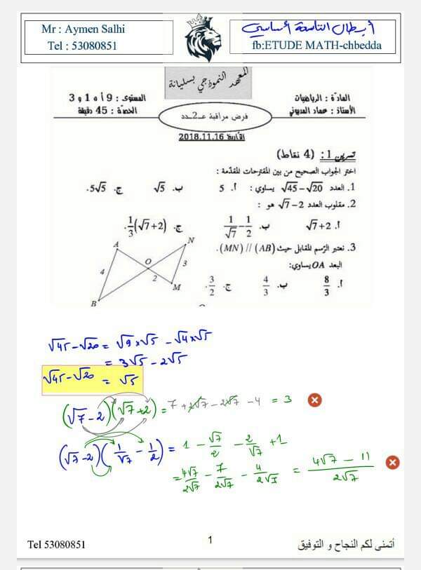 فرض مراقبة 3 رياضيات تاسعة