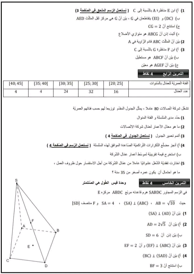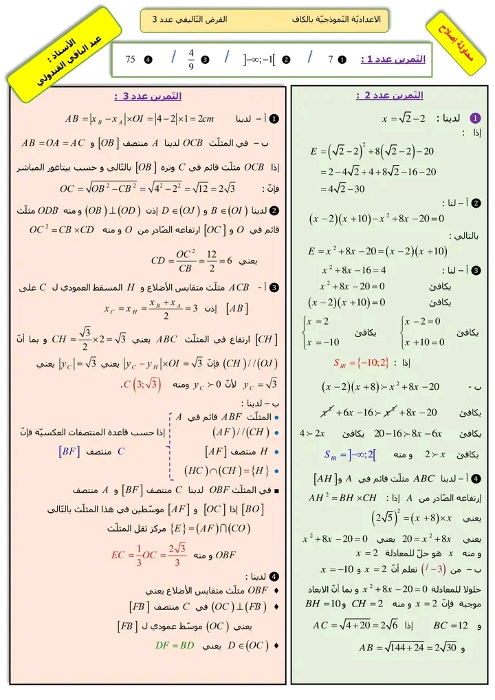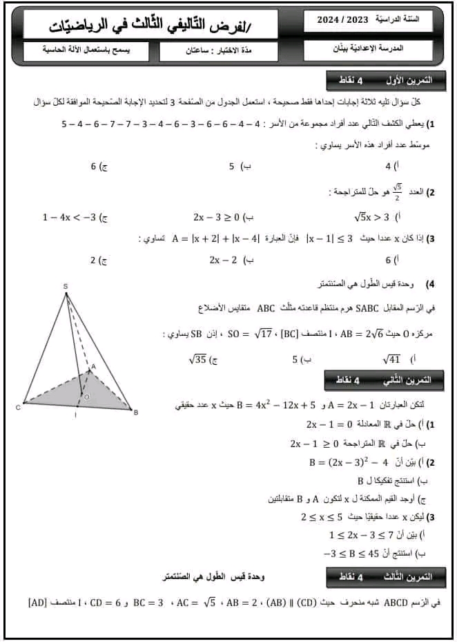 فرض تأليفي عدد 3 موحد ببنزرت مع الإصلاح
