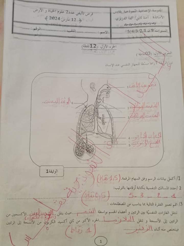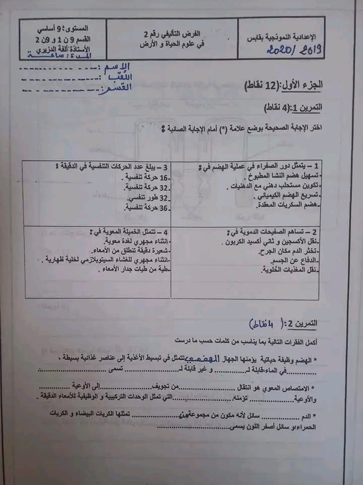 فروض تأليفية عدد 2 في مادة علوم الحياة والأرض بالاصلاح نموذجي