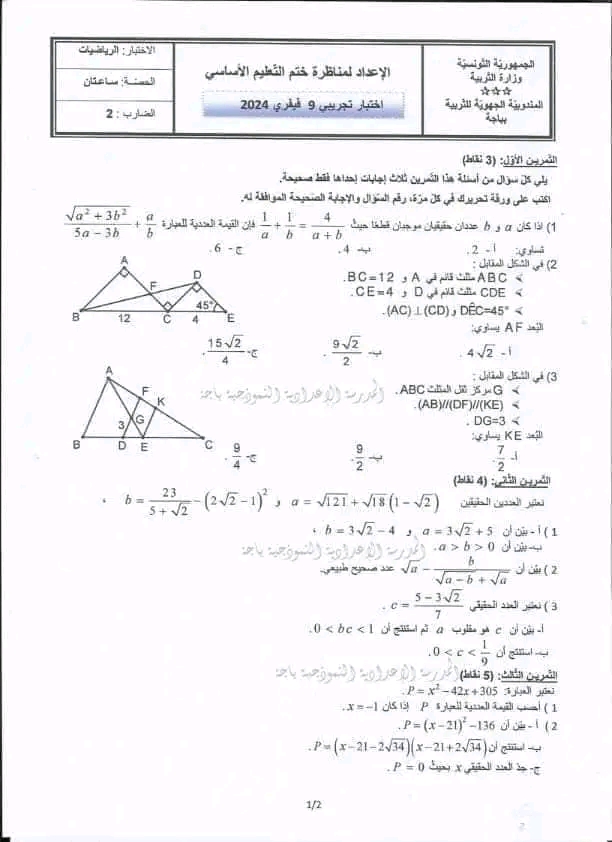 🎯مناظرة باجة التجريبية في الرياضيات مع إصلاح التمارين 1 و 2 و 3