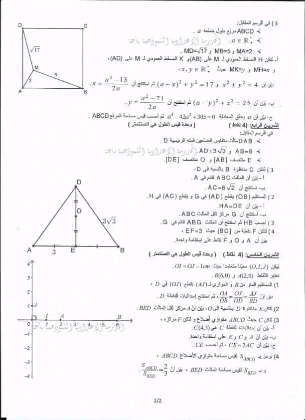 الفروض التأليفية رياضيات الثلاثي الثالث