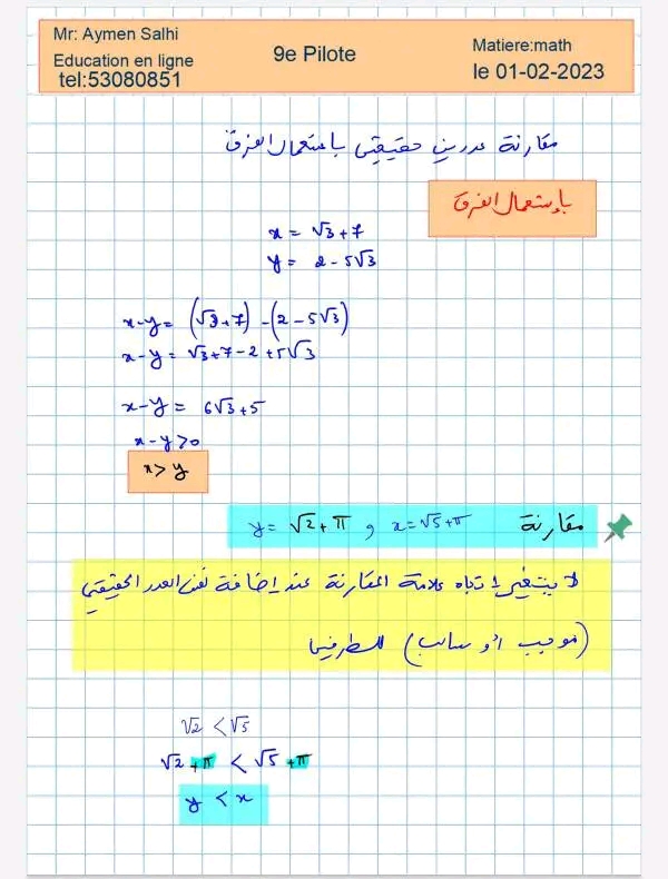 تمرين نموذجي ممتاز تحضيرا للفرض التاليفي عدد 3