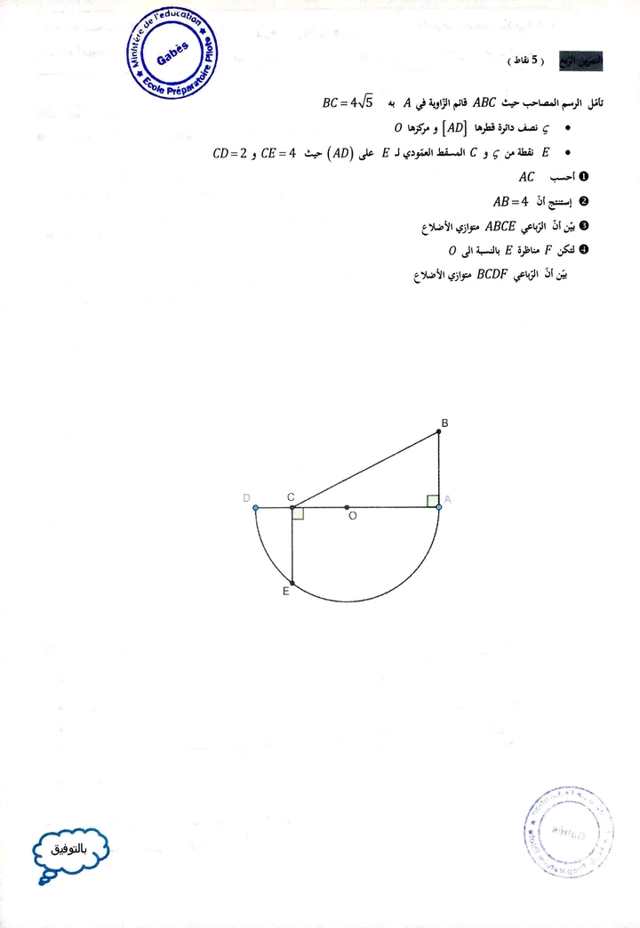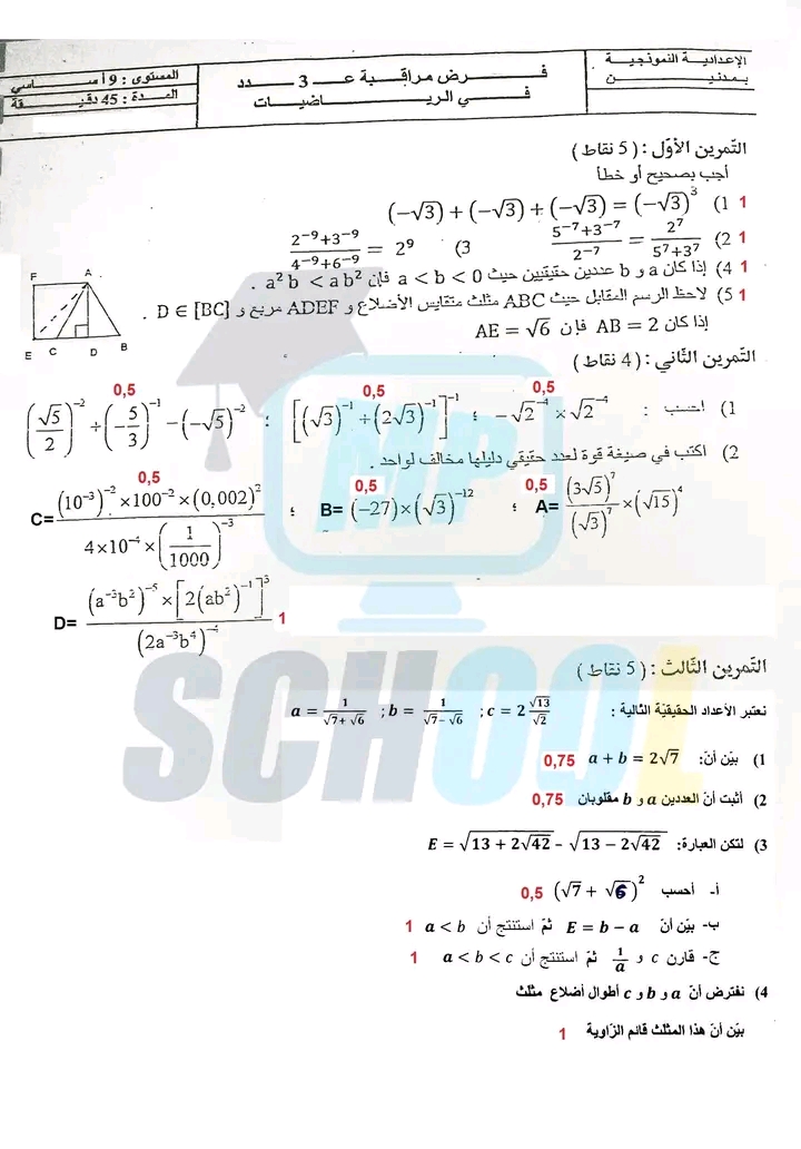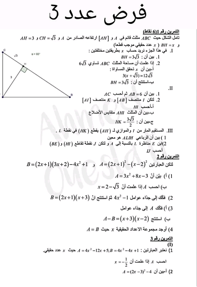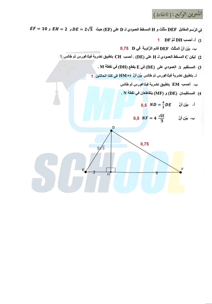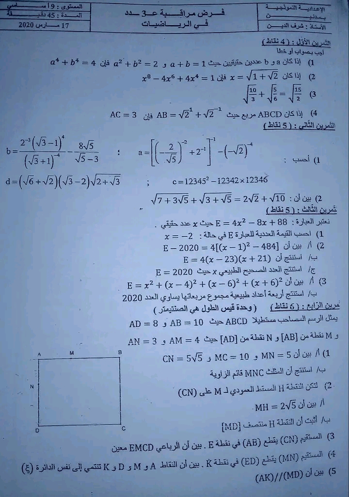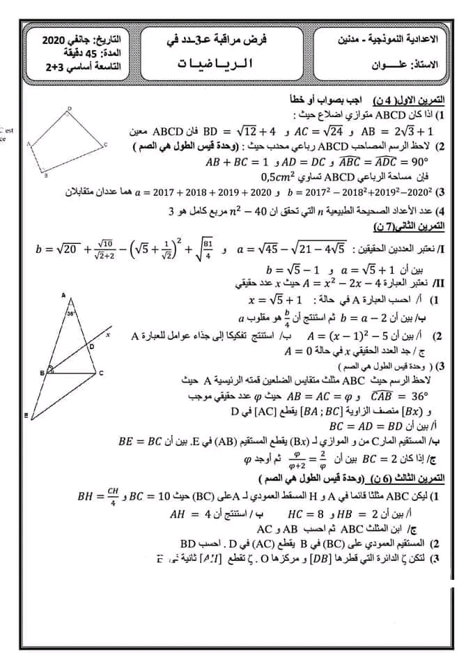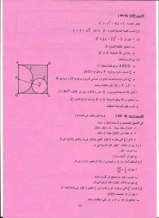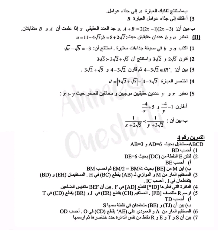 فرض مراقبة عدد 4 رياضيات