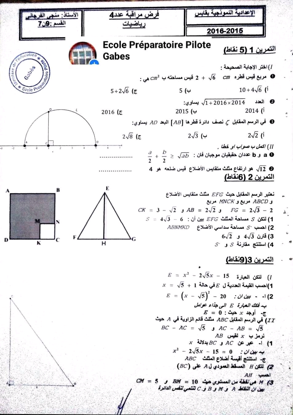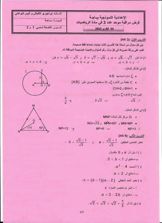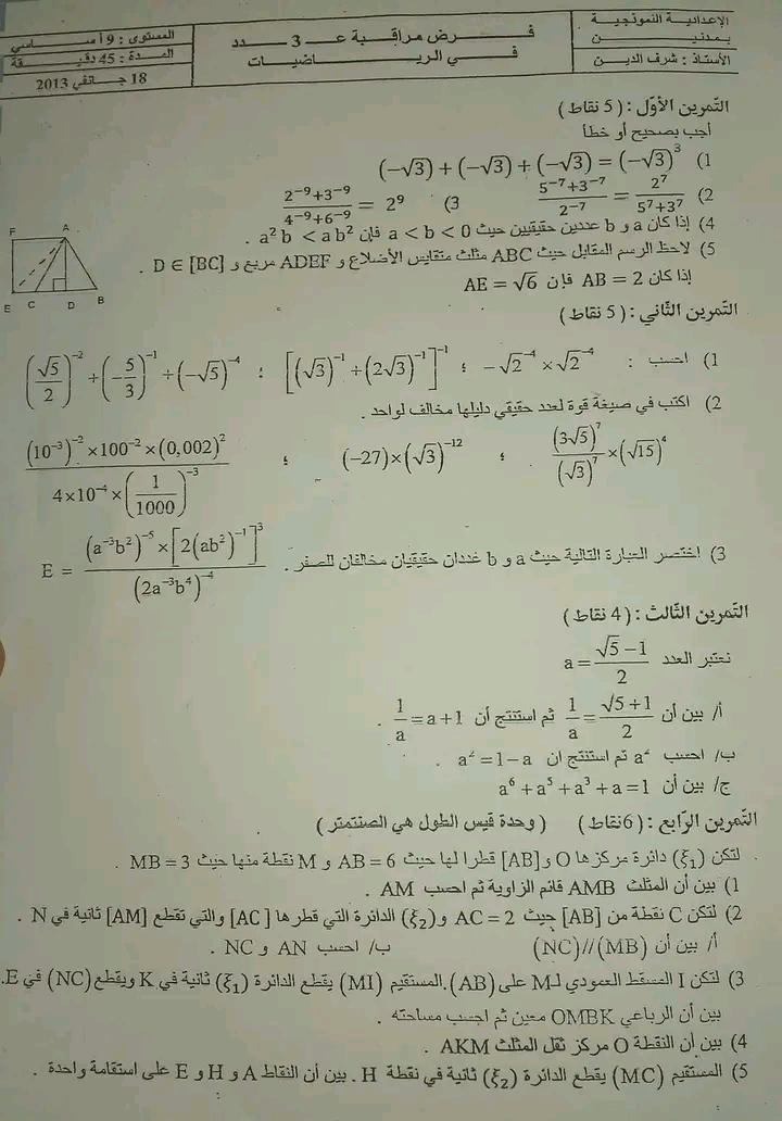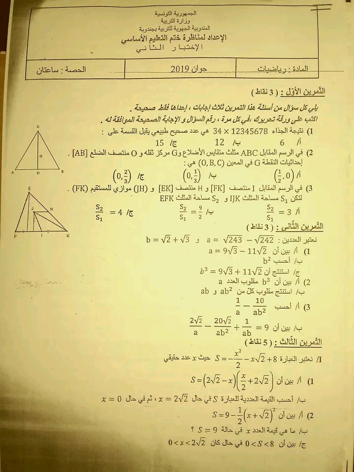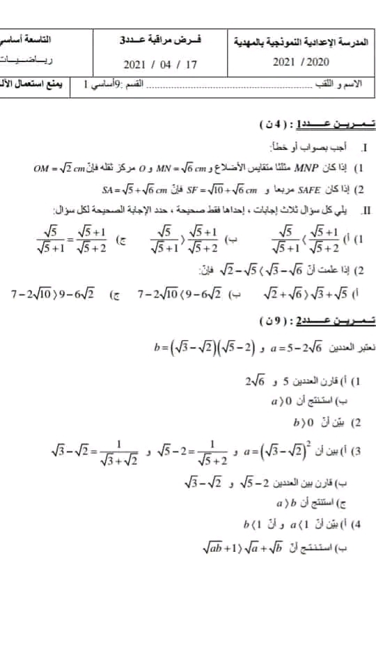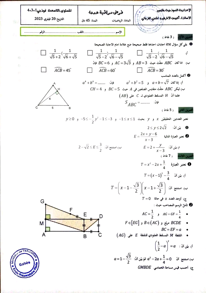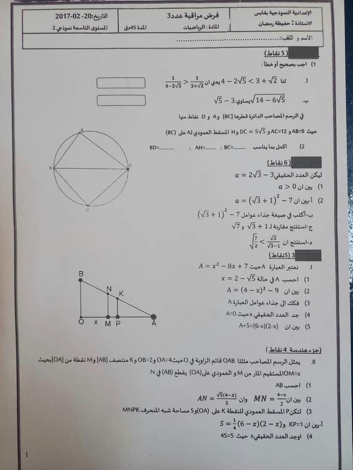 تاسعة اساسي نموذجي قابس